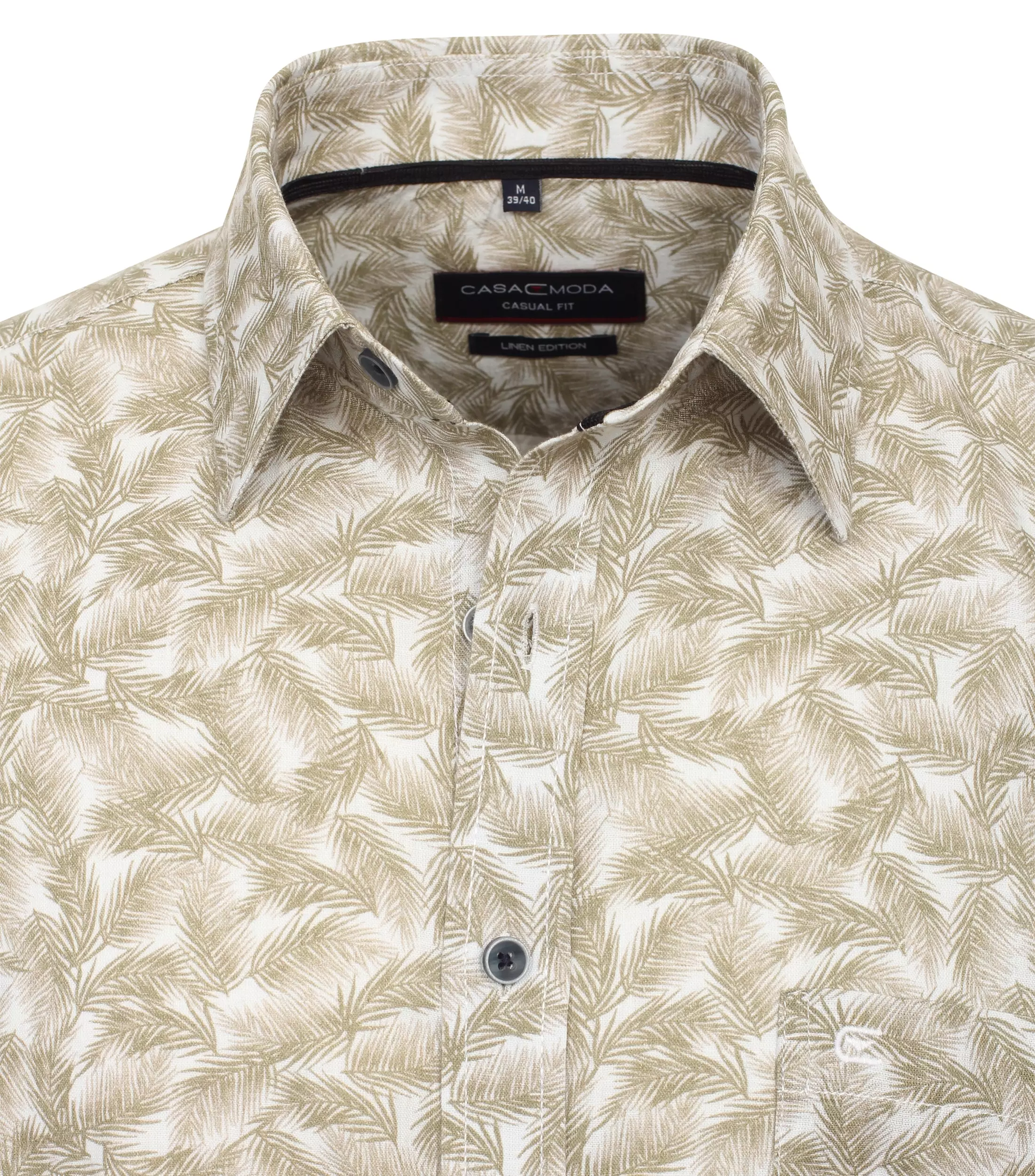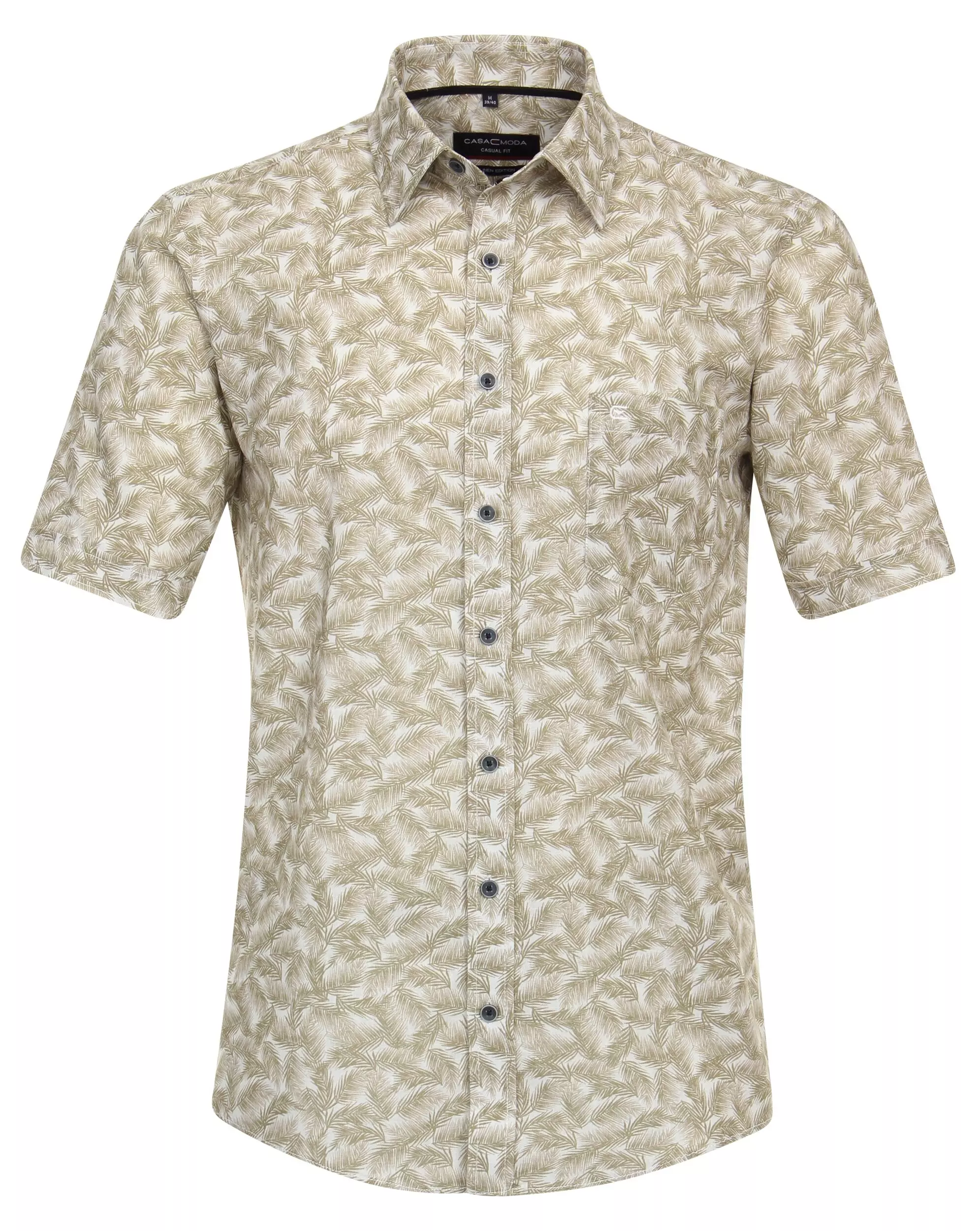 Casa Moda overhemd korte mouw met borstzakje in een groen blad design. De kwaliteit is 45% katoen en 55% linnen model casual fit.