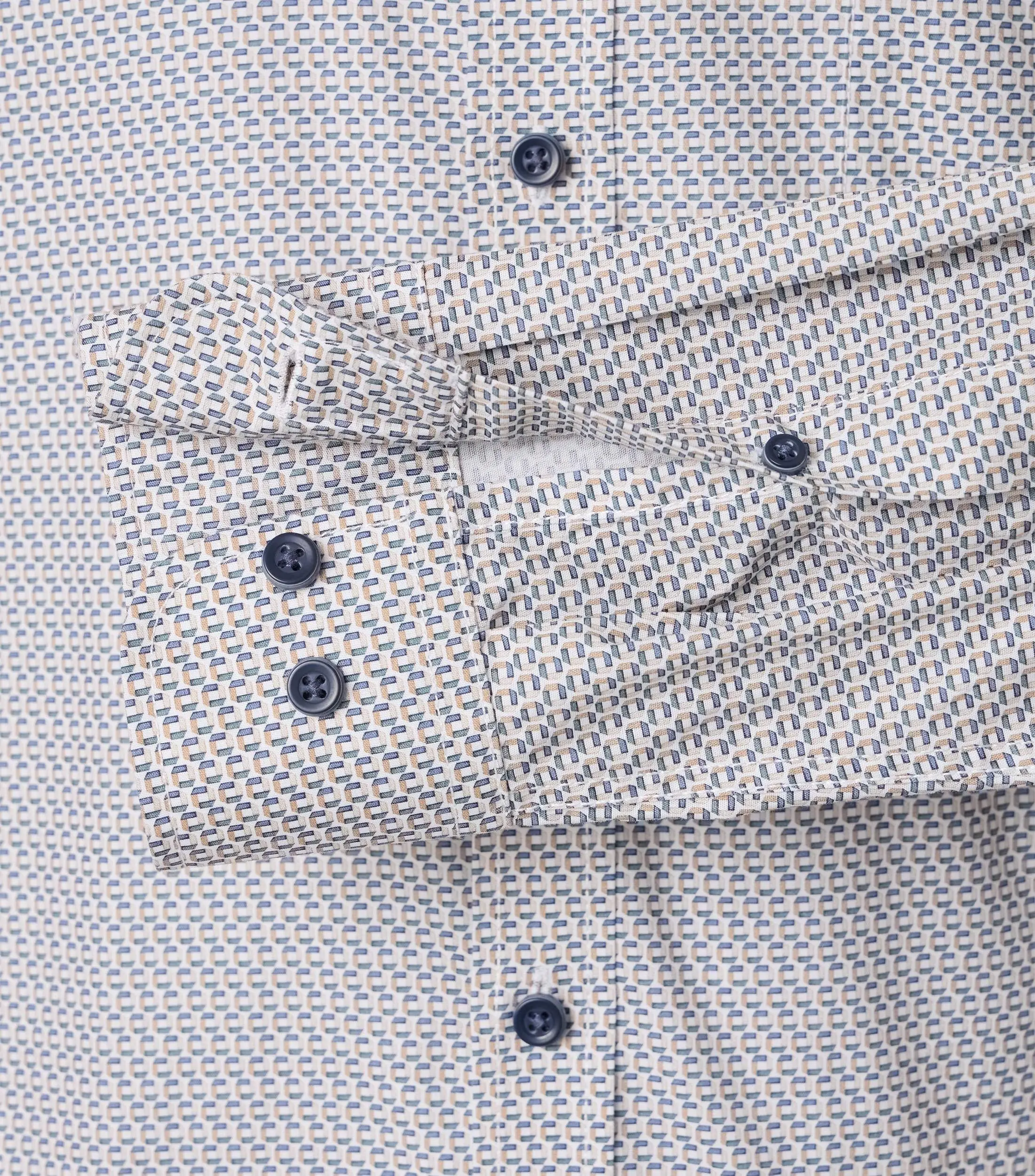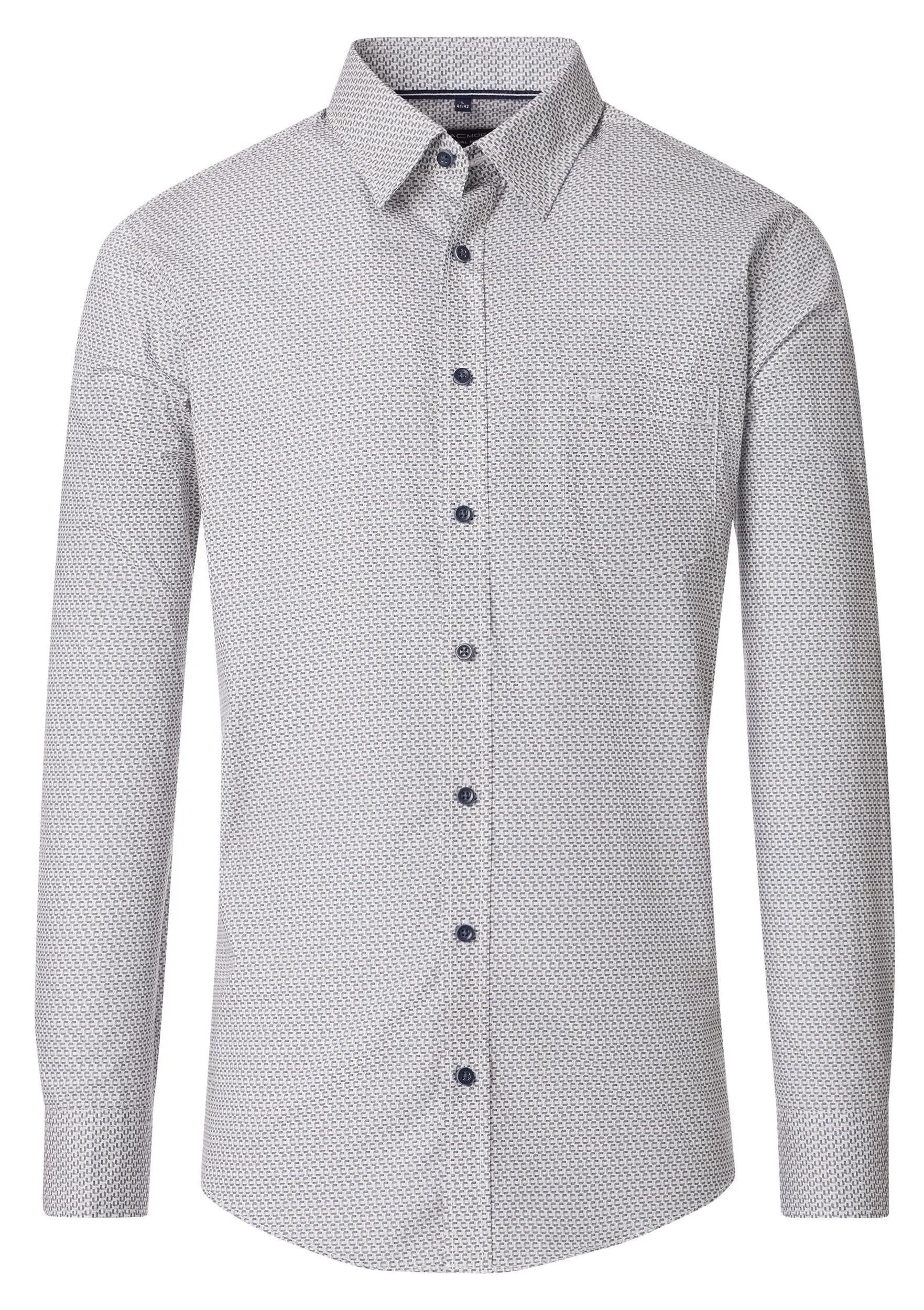 Casa Moda overhemd lange mouw met borstzakje in een beige en blauw fantasie design. De kwaliteit is 100% katoen in model comfort fit.