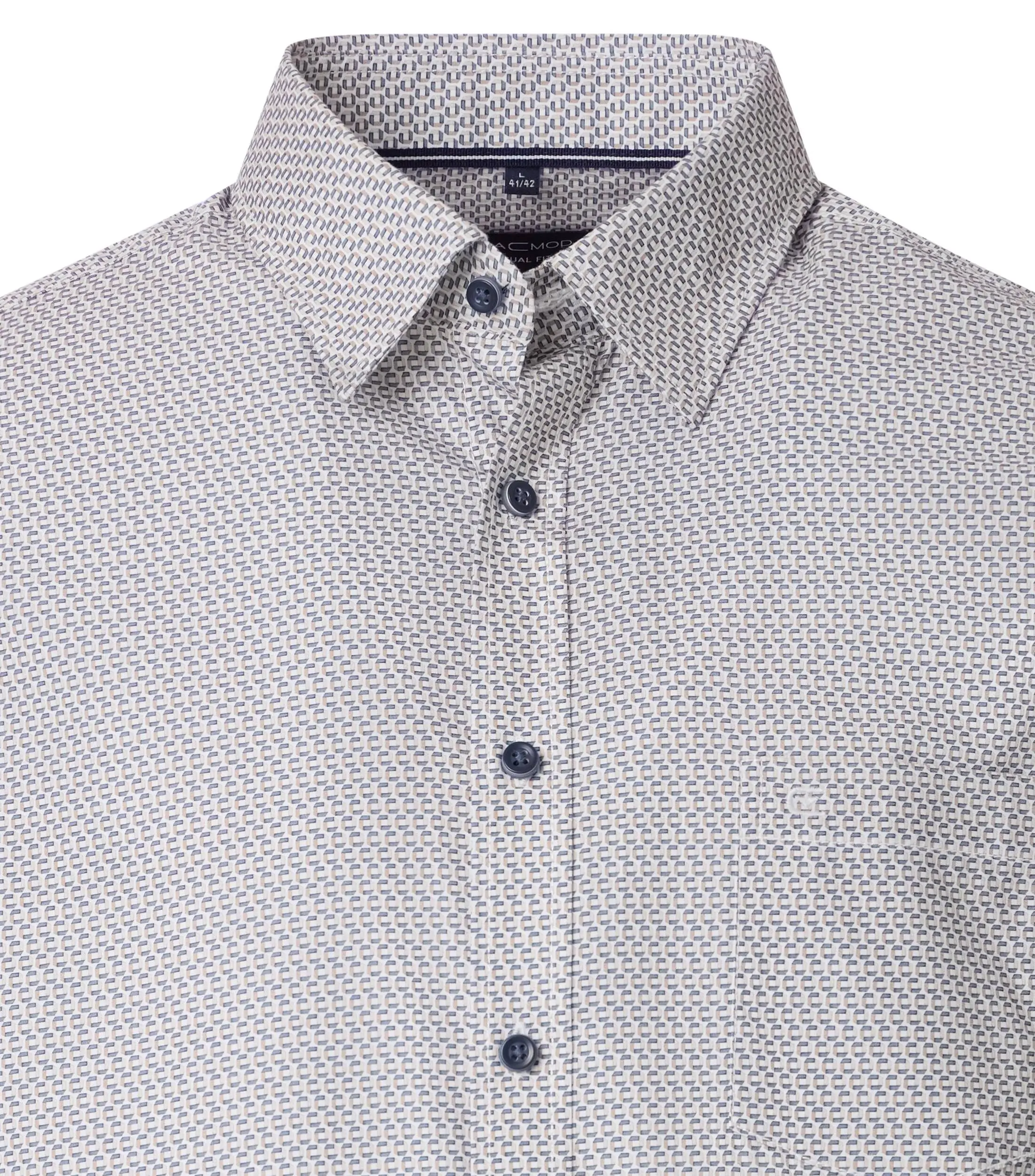 Casa Moda overhemd lange mouw met borstzakje in een beige en blauw fantasie design. De kwaliteit is 100% katoen in model comfort fit.