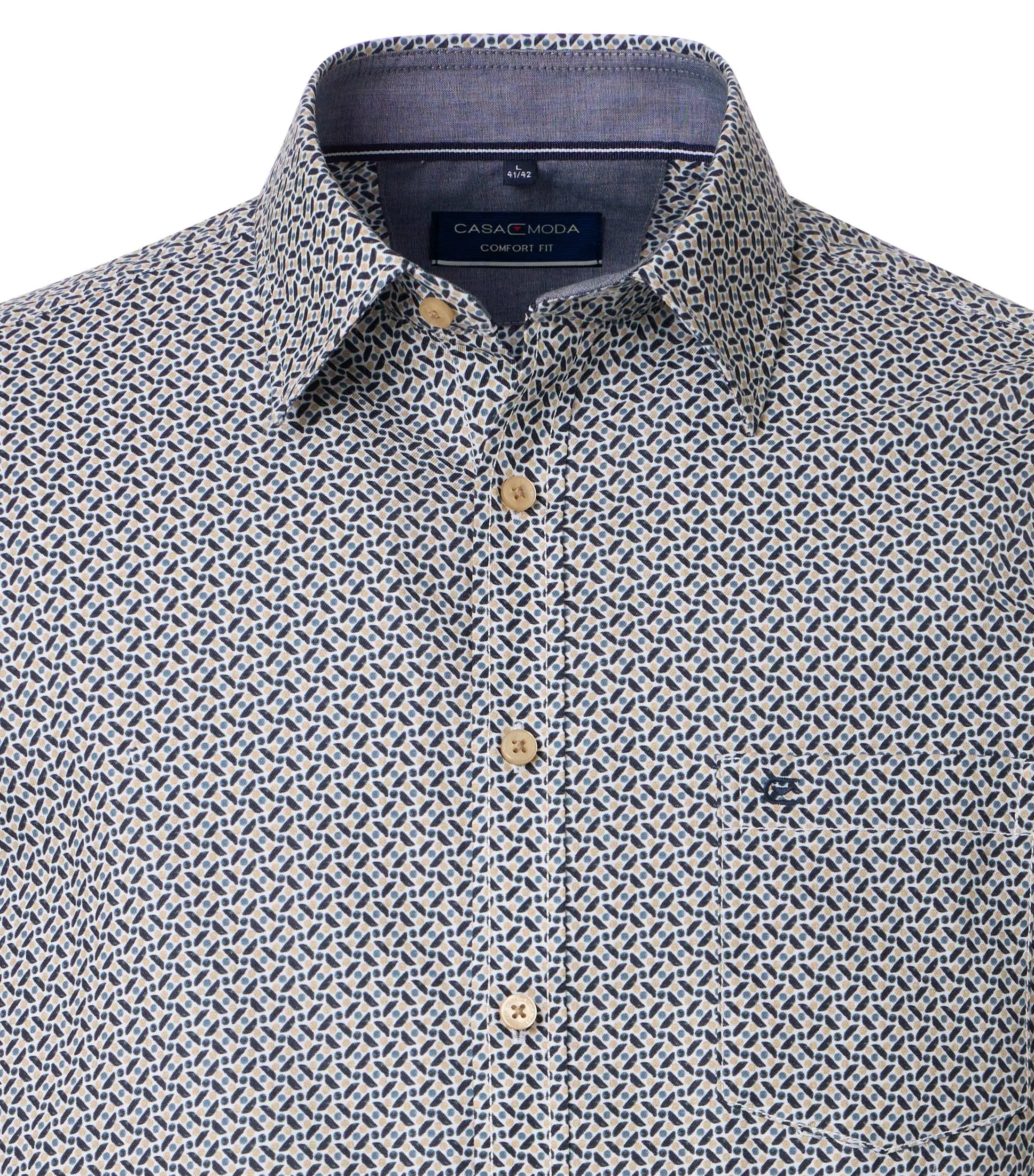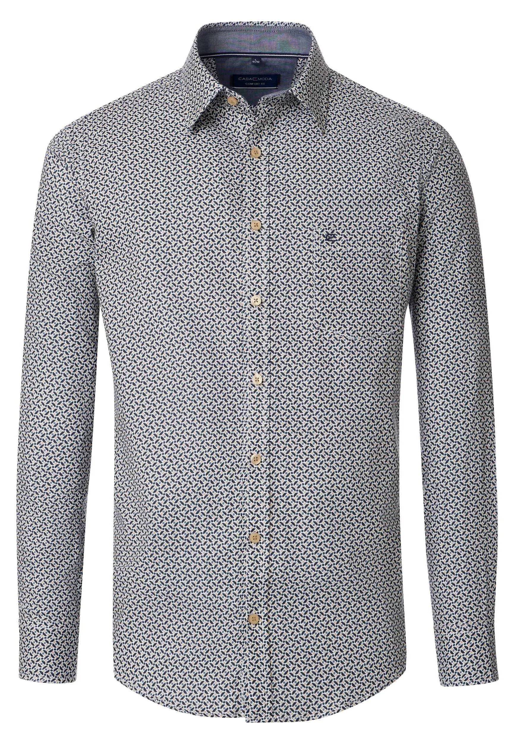 Casa Moda overhemd lange mouw blauw beige design. De kwaliteit is 100% katoen in model comfort fit.