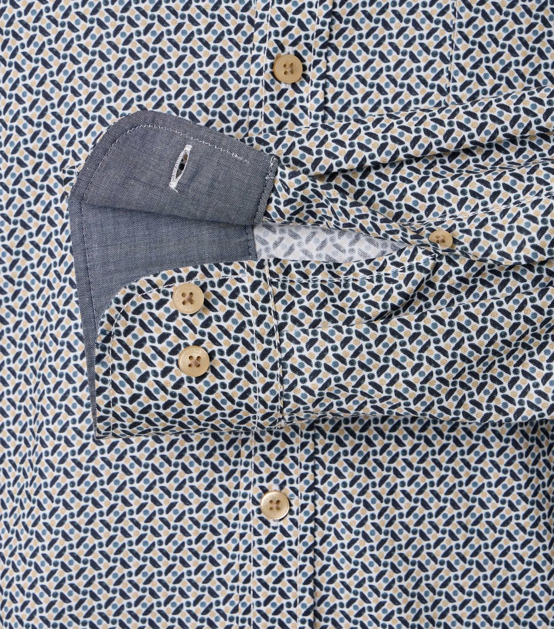 Casa Moda overhemd lange mouw blauw beige fantasie design