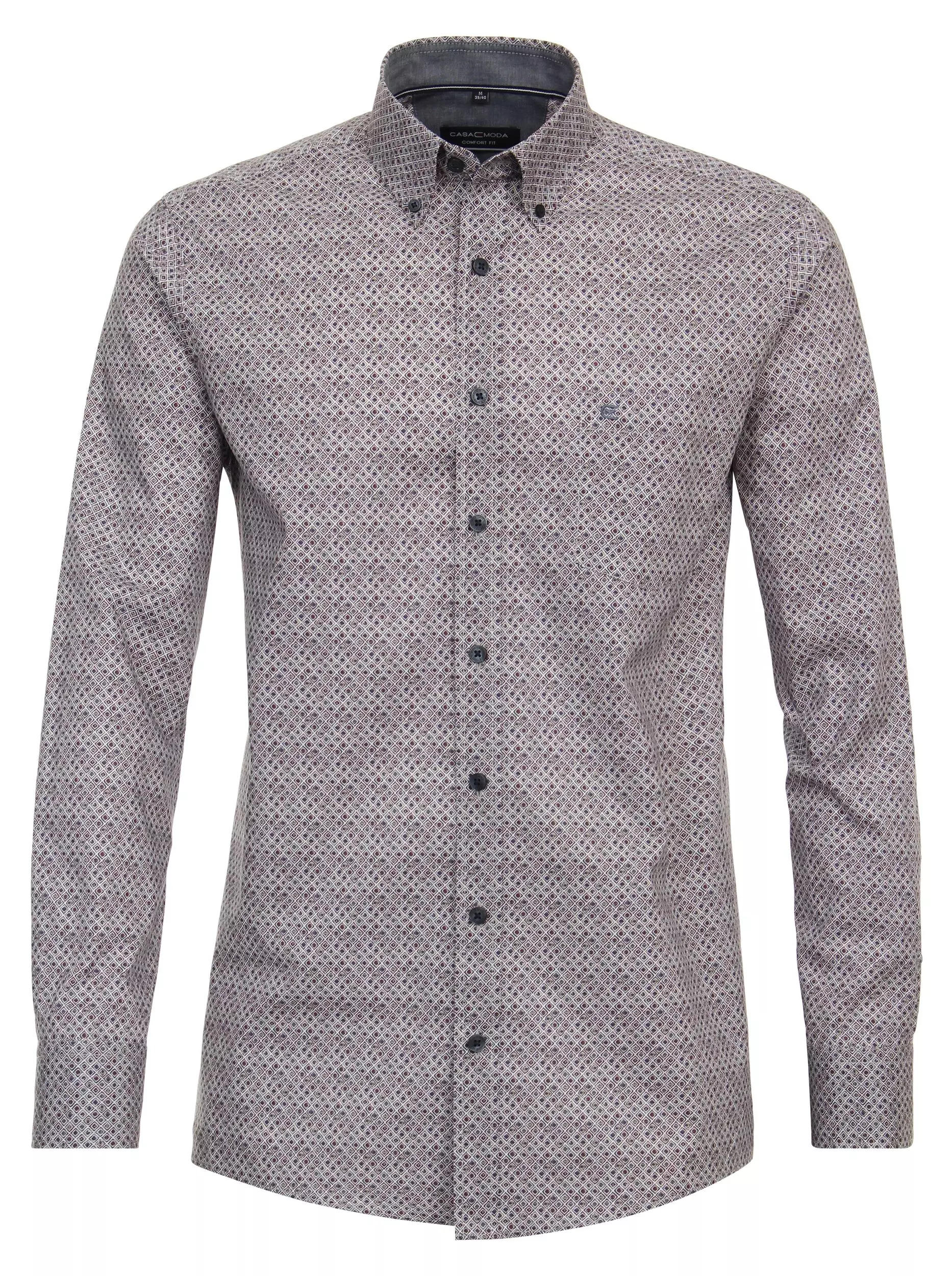 Casa Moda overhemd lange mouw met kraag button down in een blauw en bordeauxrood fantasie design. De kwaliteit is 100% katoen in model comfort fit.