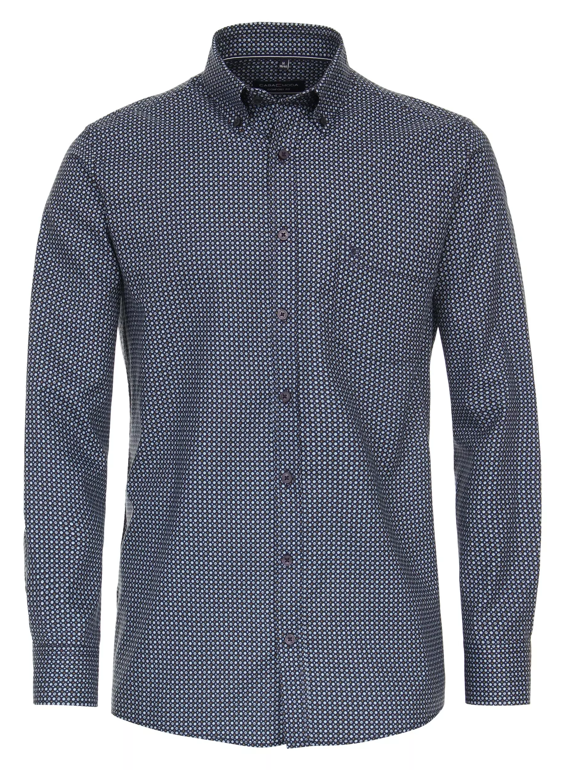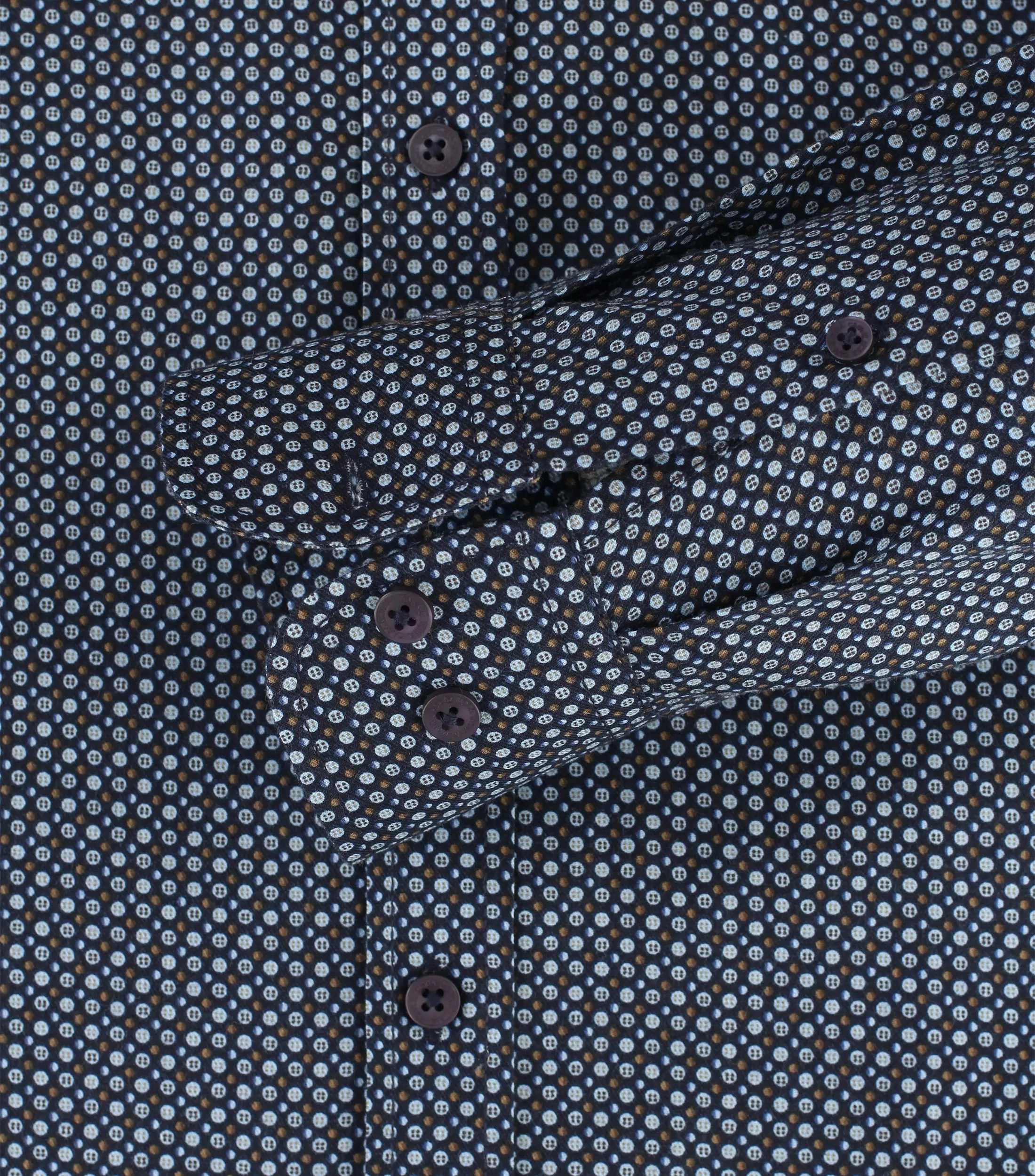 Casa Moda overhemd lange mouw blauw en bruin fantasie design. De kwaliteit is 100% katoen in model comfort fit.
