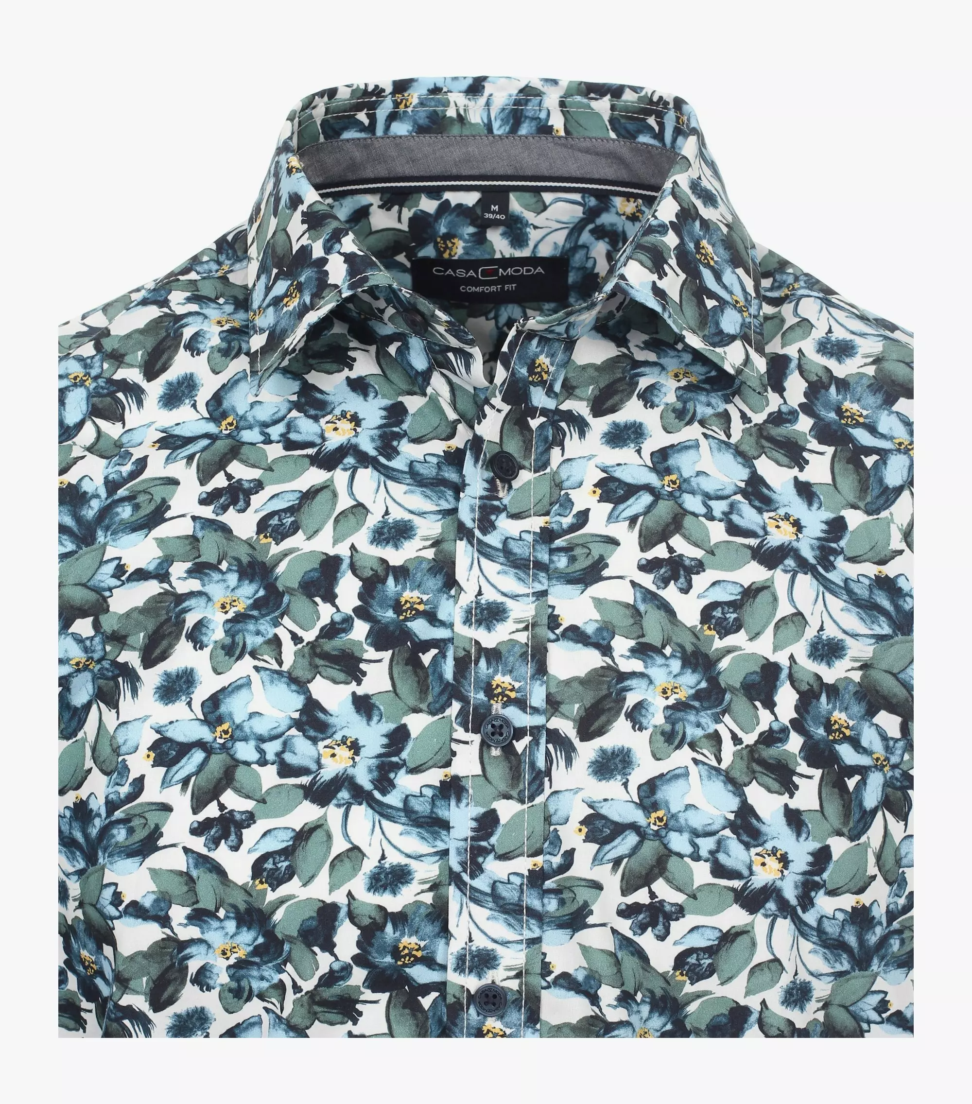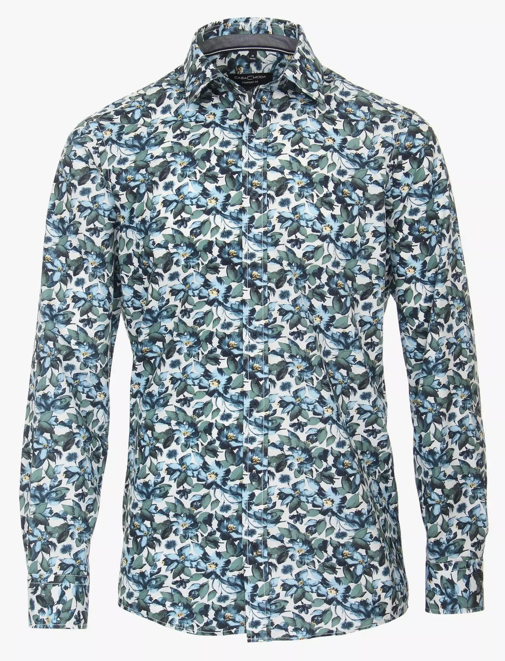 Casa Moda overhemd lange mouw in een blauw, wit, geel en groen fantasie design. Casa Moda overhemd lange mouw zonder borstzakje. De kwaliteit is 100% katoen in model comfort fit.