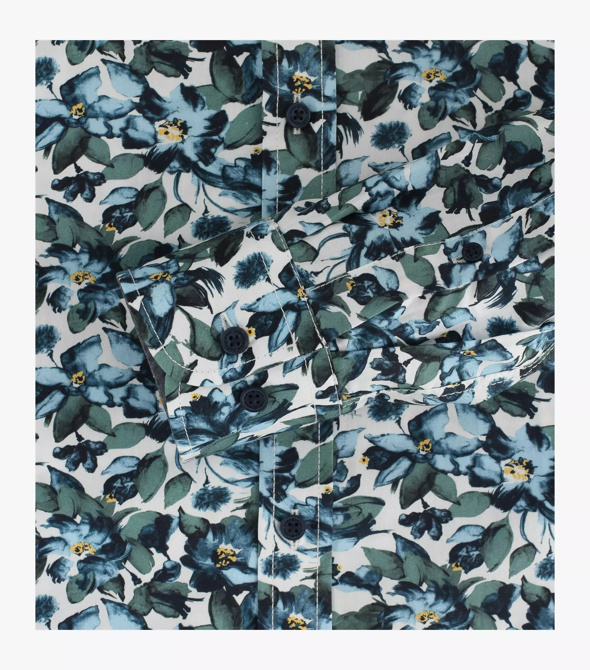 Casa Moda overhemd lange mouw in een blauw, wit, geel en groen fantasie design. Casa Moda overhemd lange mouw zonder borstzakje. De kwaliteit is 100% katoen in model comfort fit.