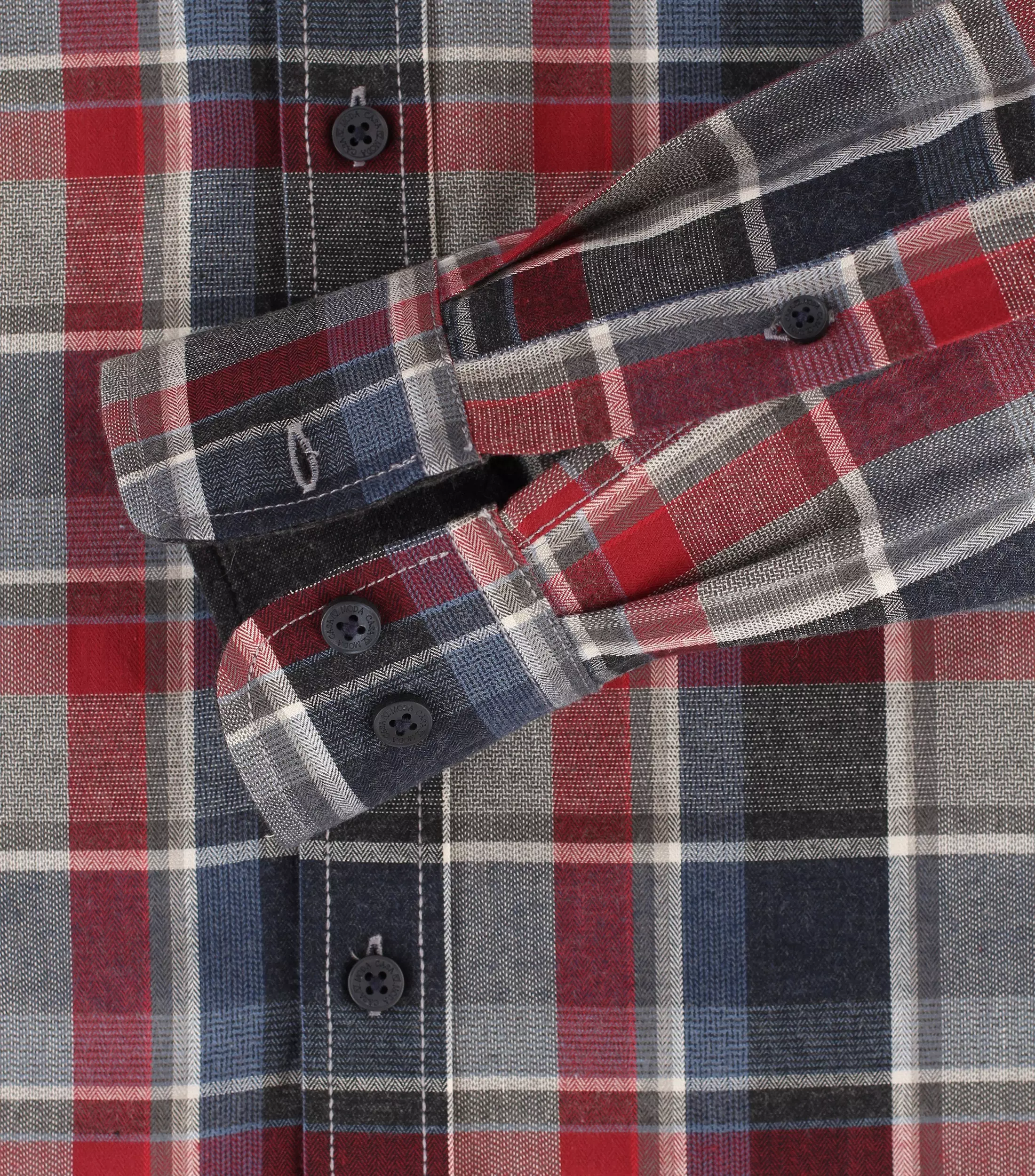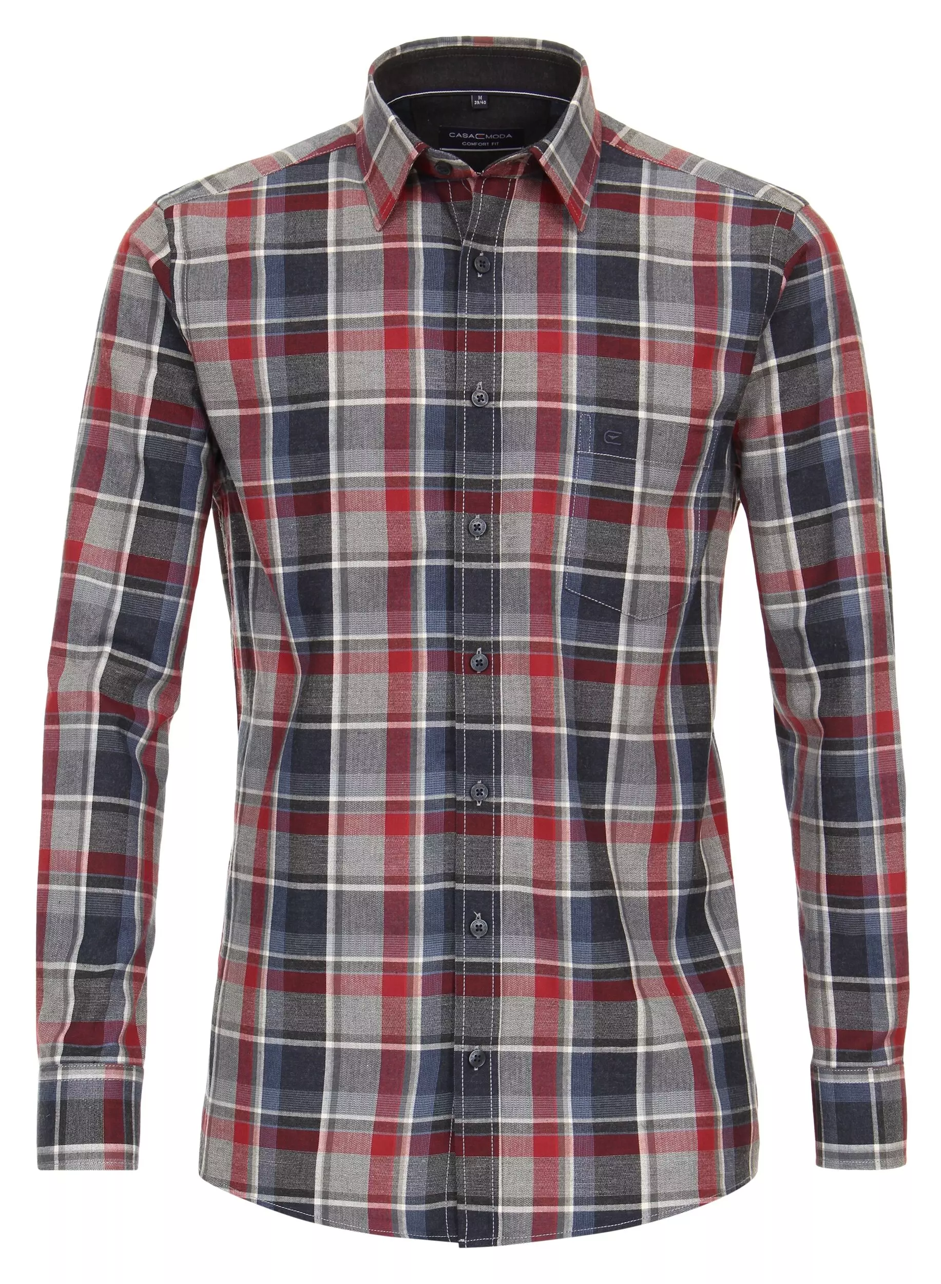 Casa Moda overhemd lange mouw blauw, grijs en rode ruit. De kwaliteit is 100% katoen in model comfort fit.