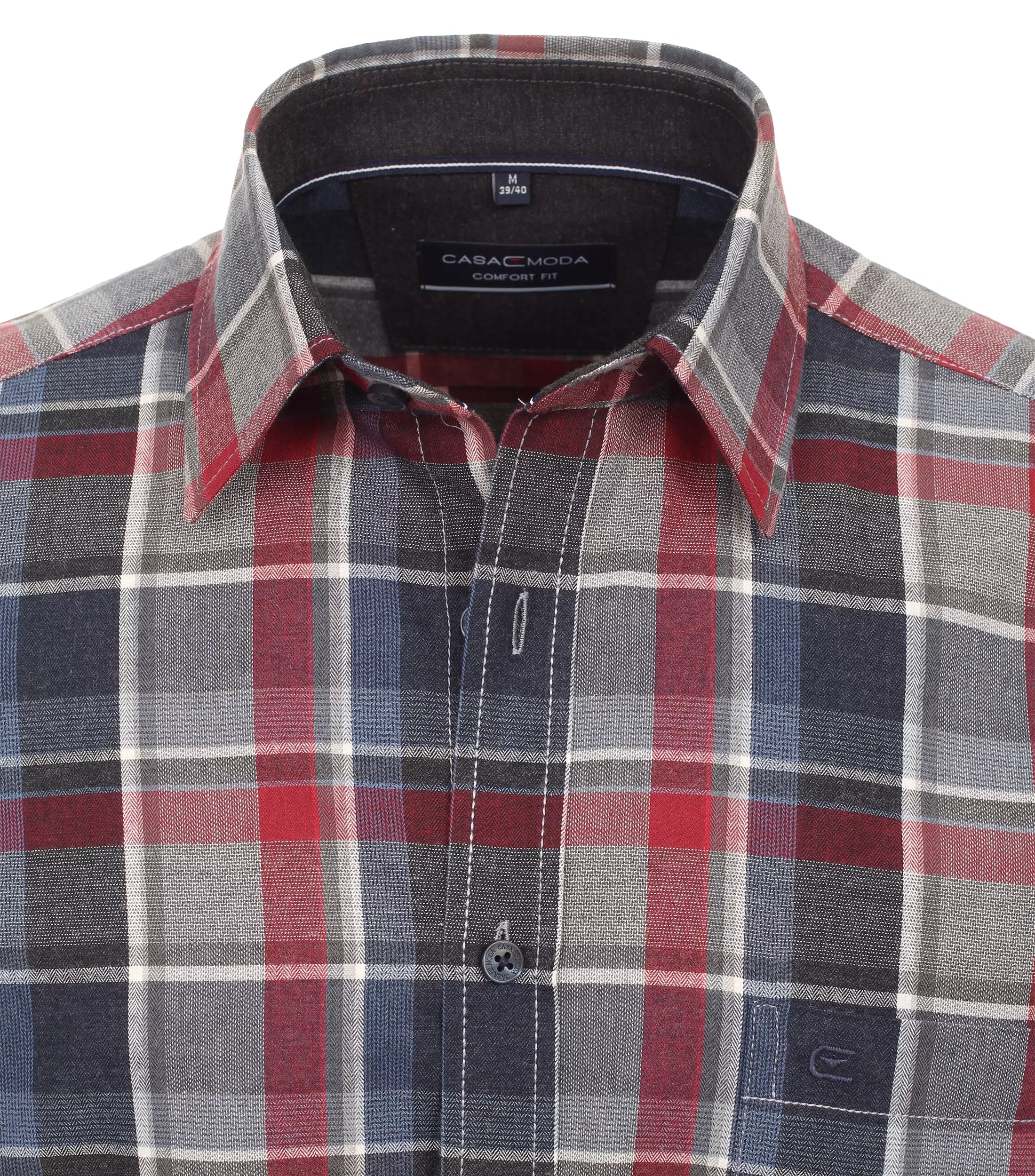 Casa Moda overhemd lange mouw blauw, grijs en rode ruit. De kwaliteit is 100% katoen in model comfort fit.