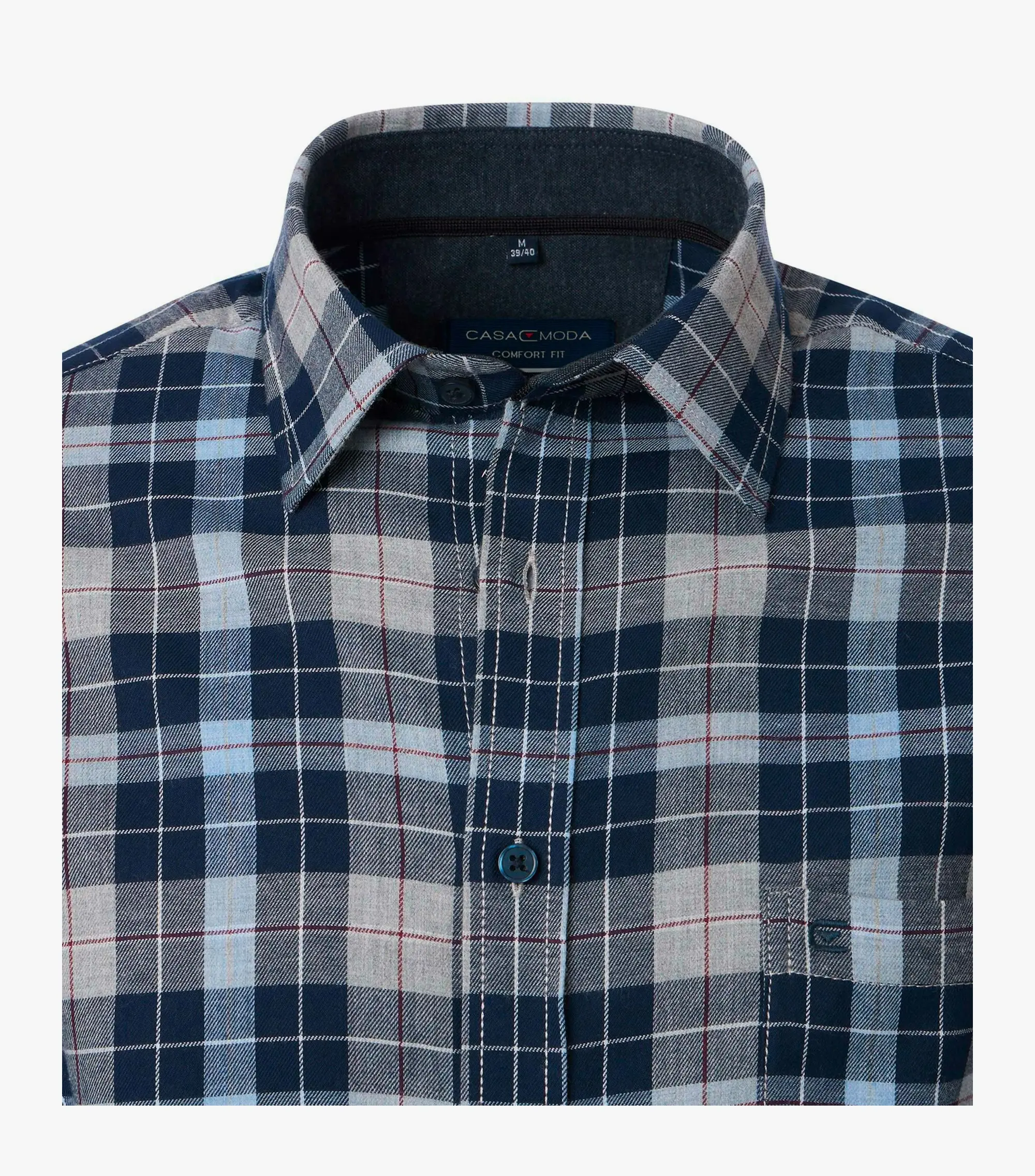 Casa Moda overhemd lange mouw met borstzakje in een blauw met rood ruit design. De kwaliteit is 100% katoen flanel cashmere feeling in model comfort fit