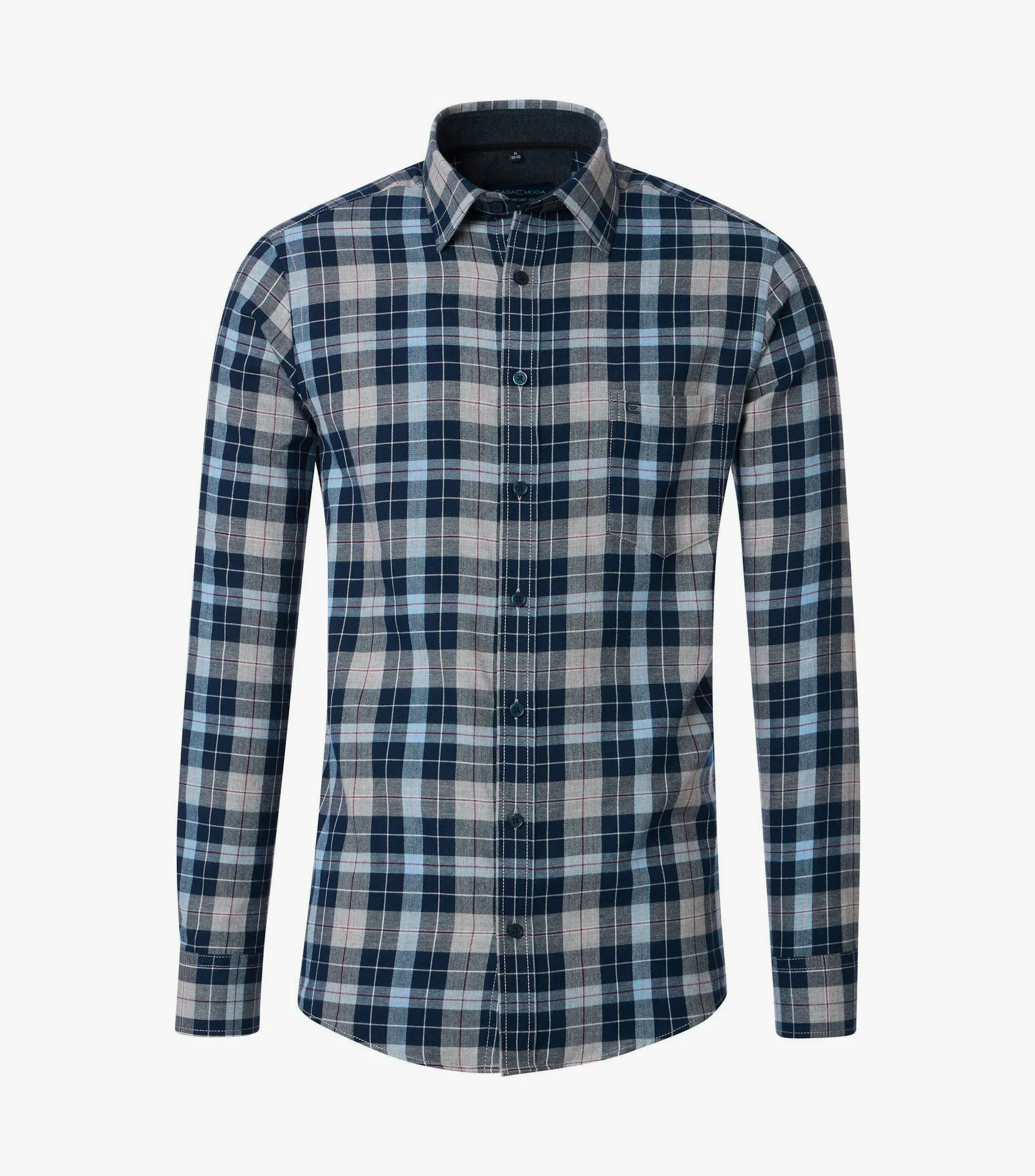 Casa Moda overhemd lange mouw met borstzakje in een blauw met rood ruit design. De kwaliteit is 100% katoen flanel cashmere feeling in model comfort fit