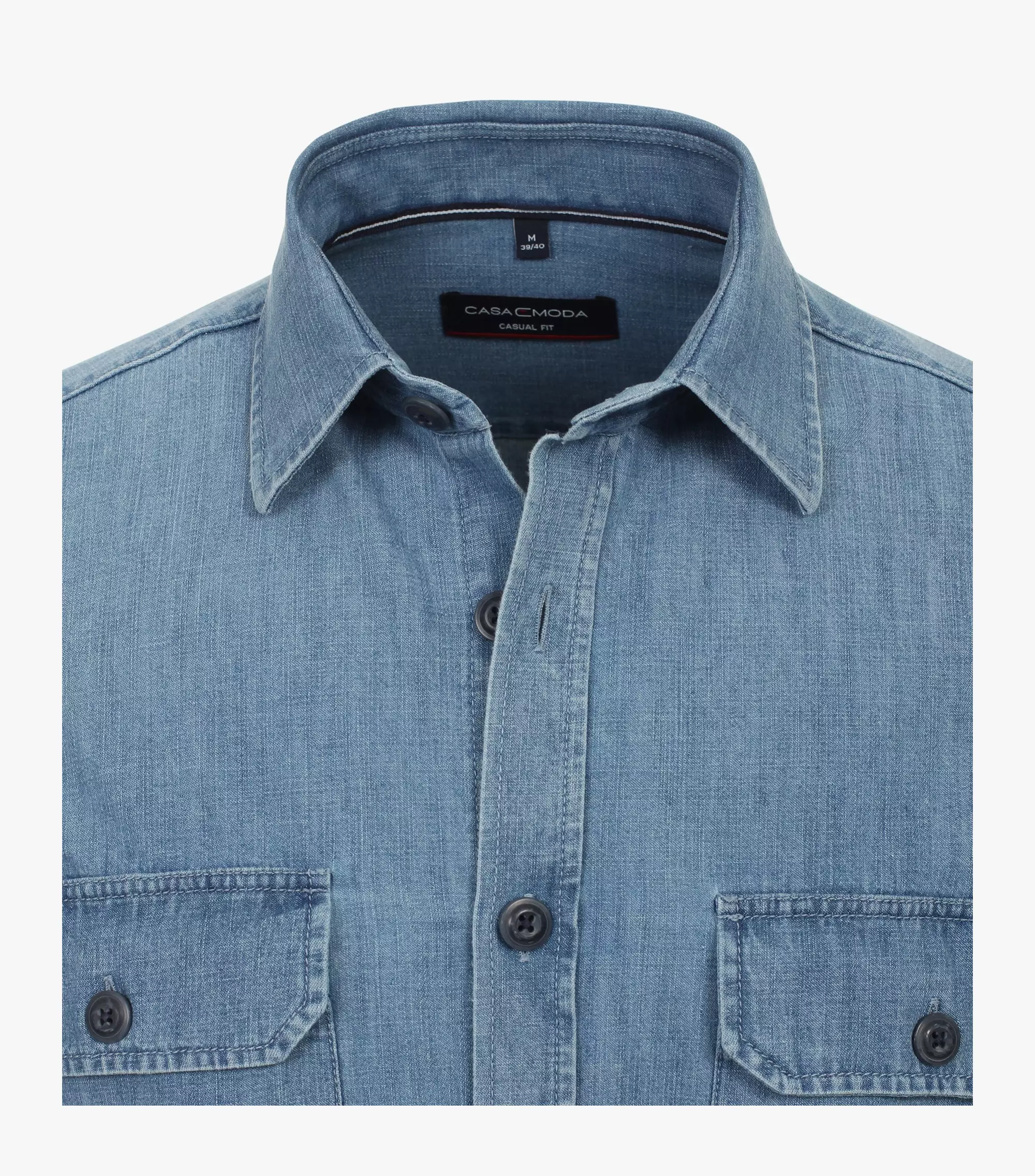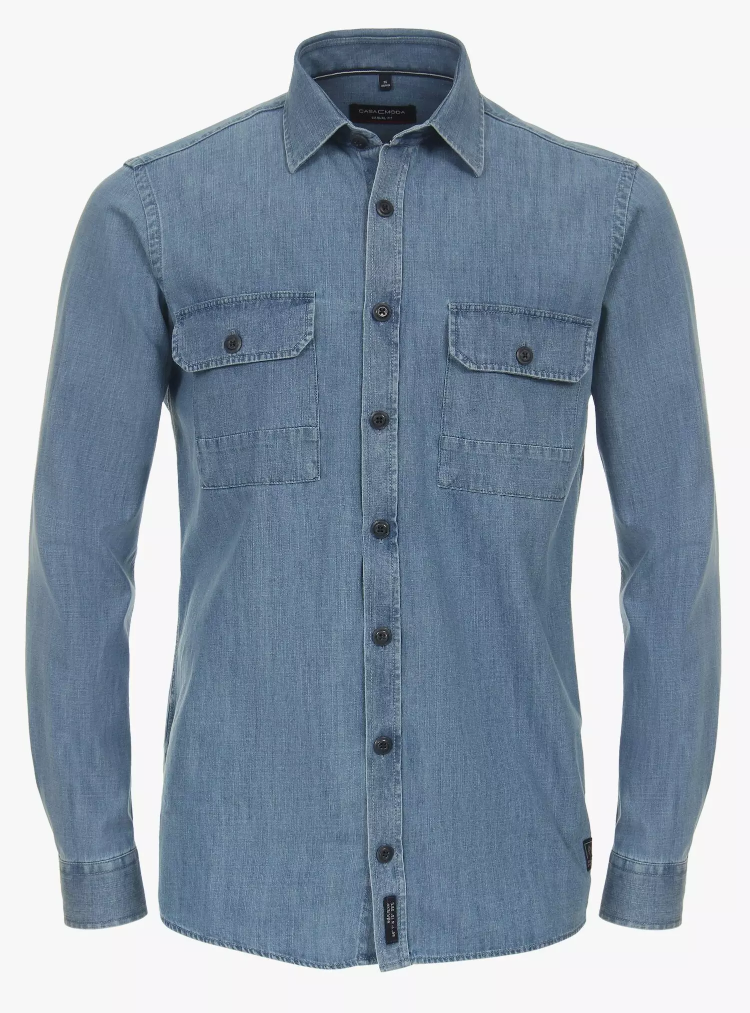 Casa Moda lange mouw spijker denim overhemd met dubbele borstzakken. Casa Moda overhemd in 100% katoen model casual fit.