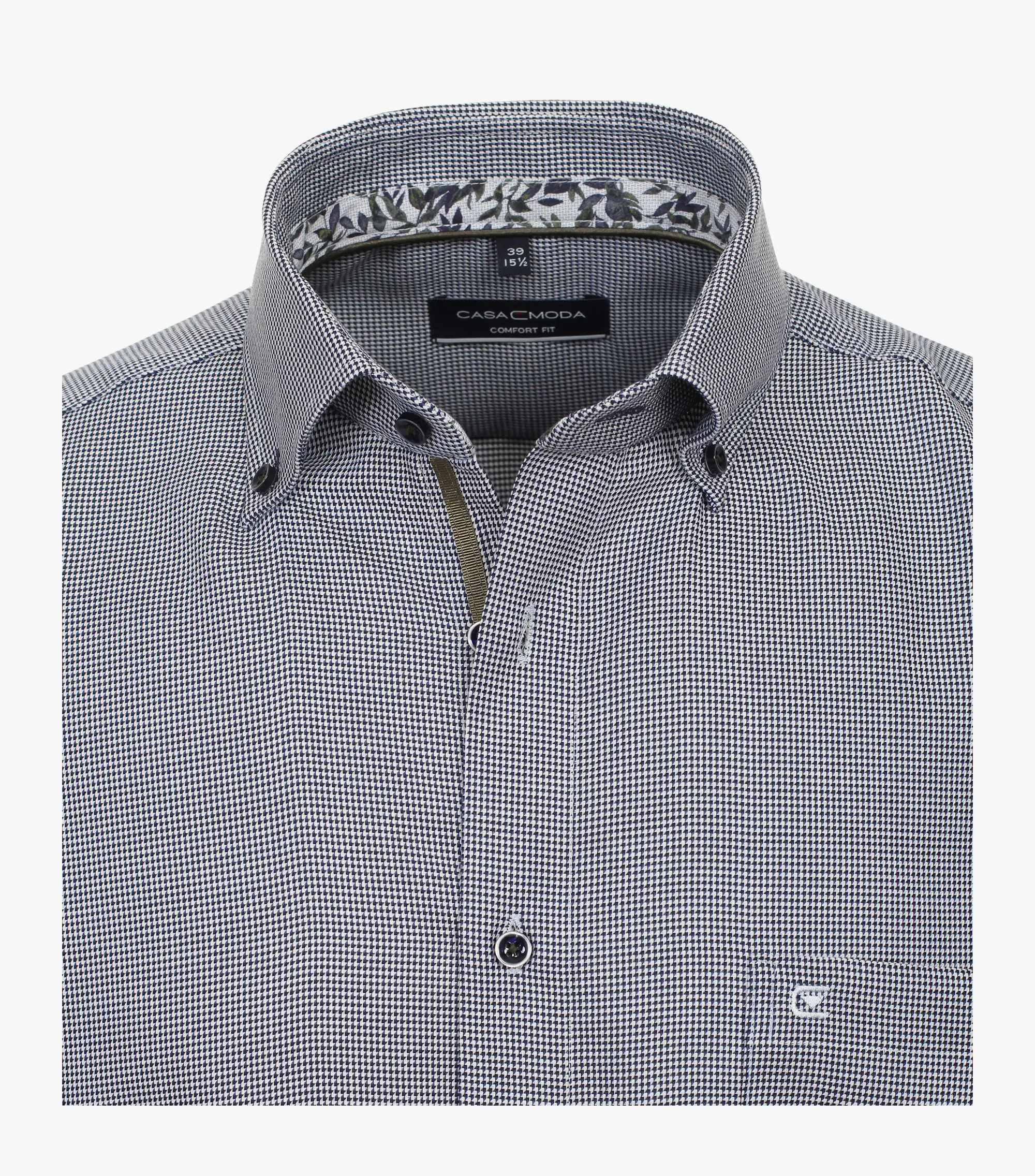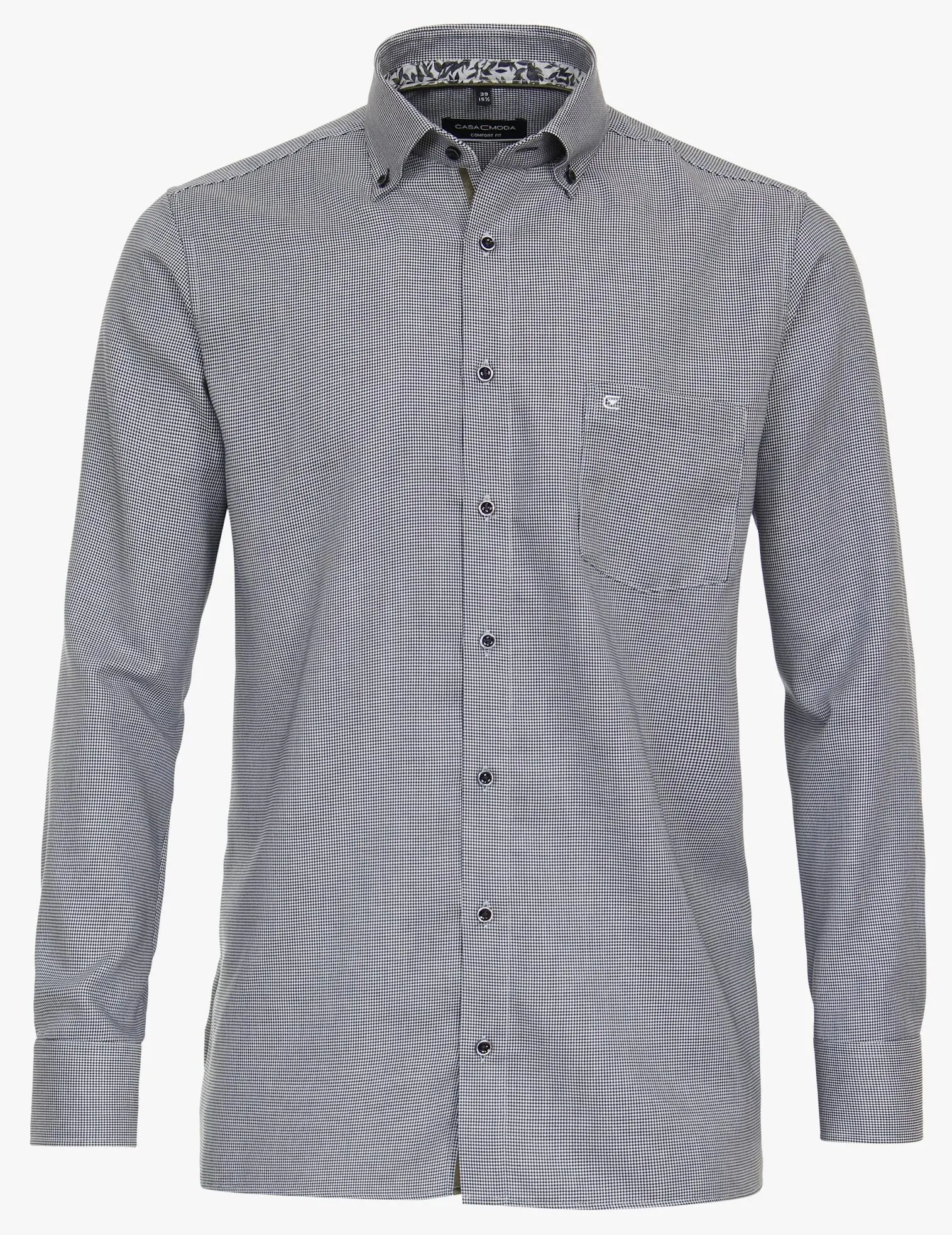 Casa Moda overhemd lange mouw met borstzakje in een donkerblauw design met kraag button down. De kwaliteit is 100% katoen strijkvrij in model comfort fit.