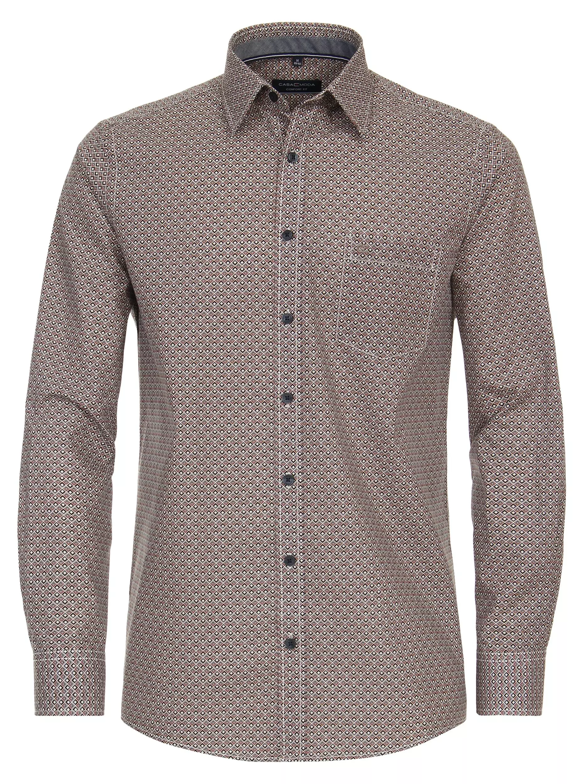Casa Moda overhemd lange mouw donkergrijs en bordeauxrood design. De kwaliteit is 100% katoen in model comfort fit.