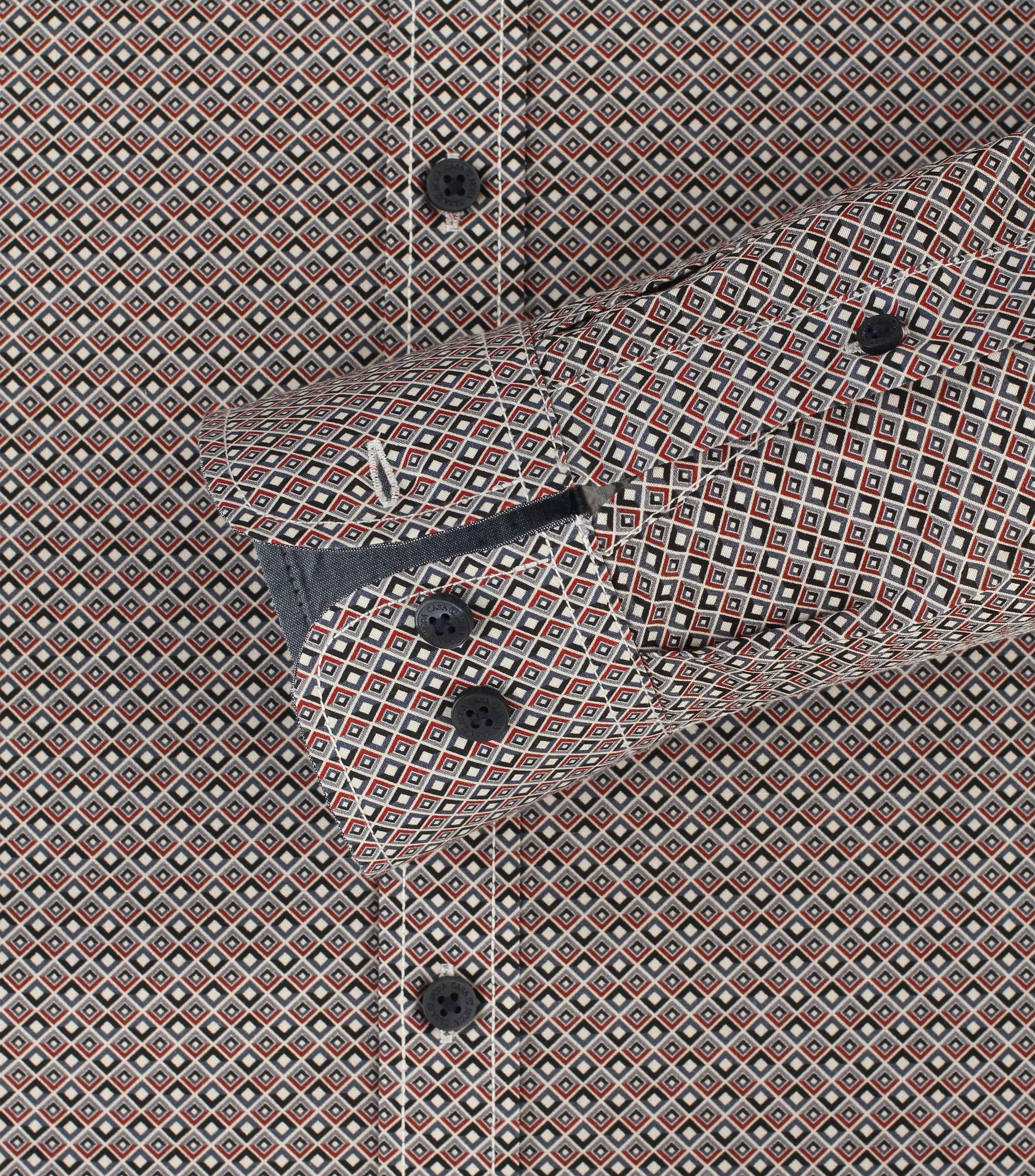 Casa Moda overhemd lange mouw met borstzakje in donkergrijs met wit en bordeauxrood design. De kwaliteit is 100% katoen in model comfort fit.