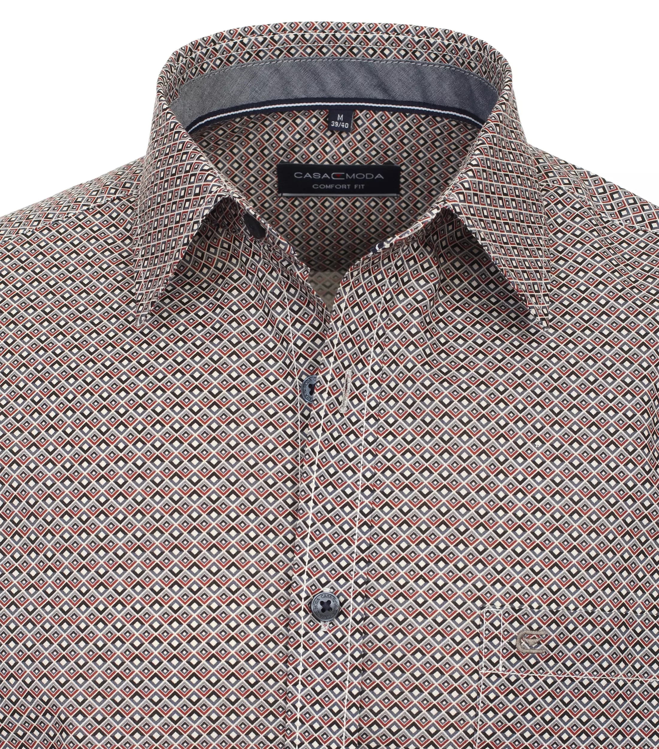 Casa Moda overhemd lange mouw met borstzakje in donkergrijs met wit en bordeauxrood design. De kwaliteit is 100% katoen in model comfort fit.