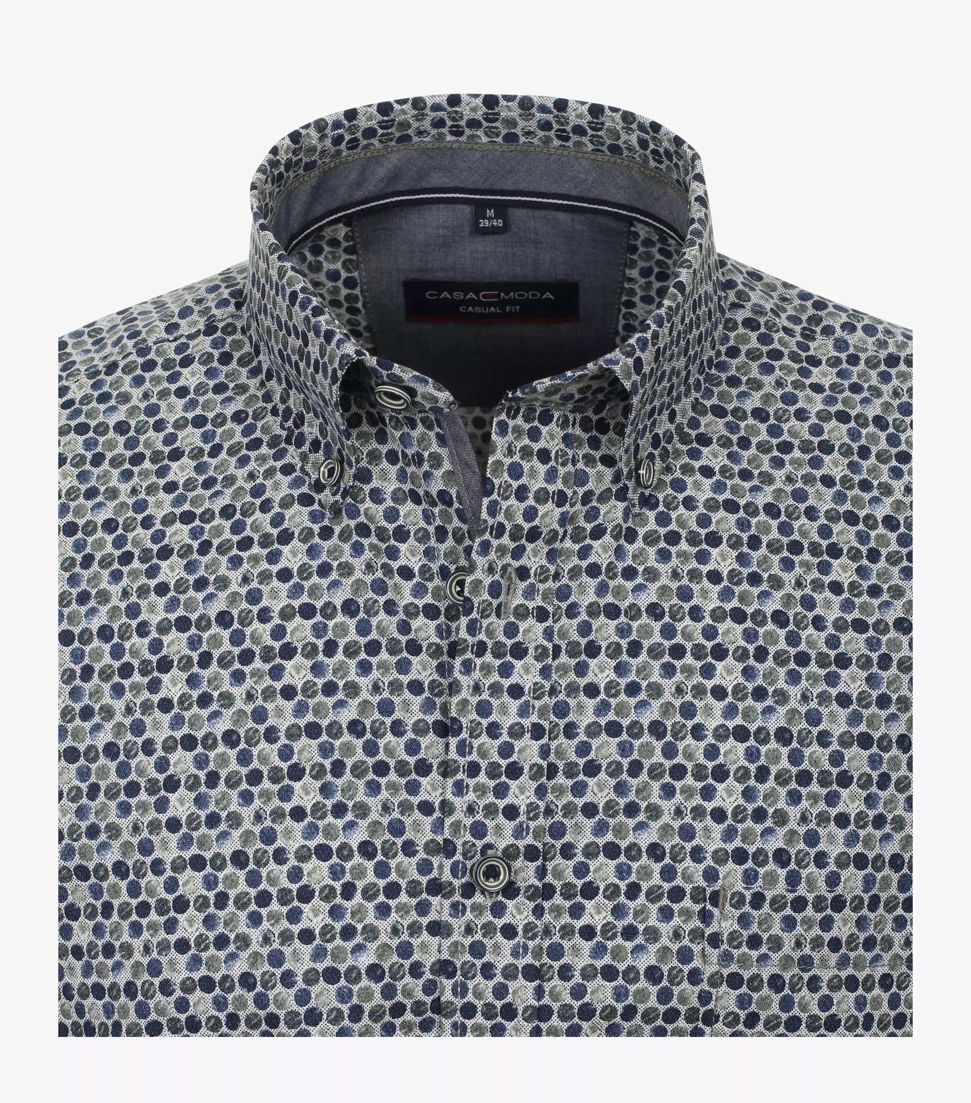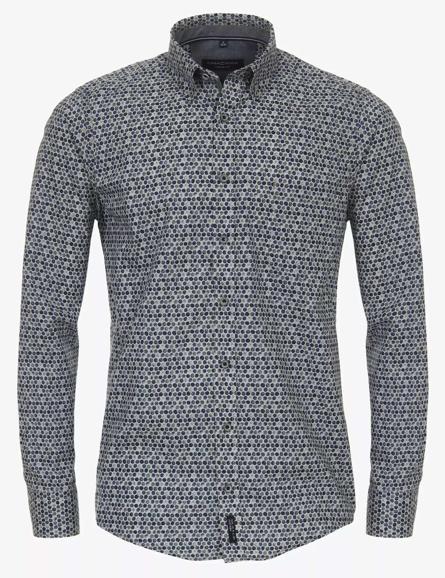 Casa Moda overhemd grote maat lange mouw fantasie cirkel design. Casa Moda overhemd lange mouw met borstzakje en kraag button down. De kwaliteit is 100% katoen in model casual fit.