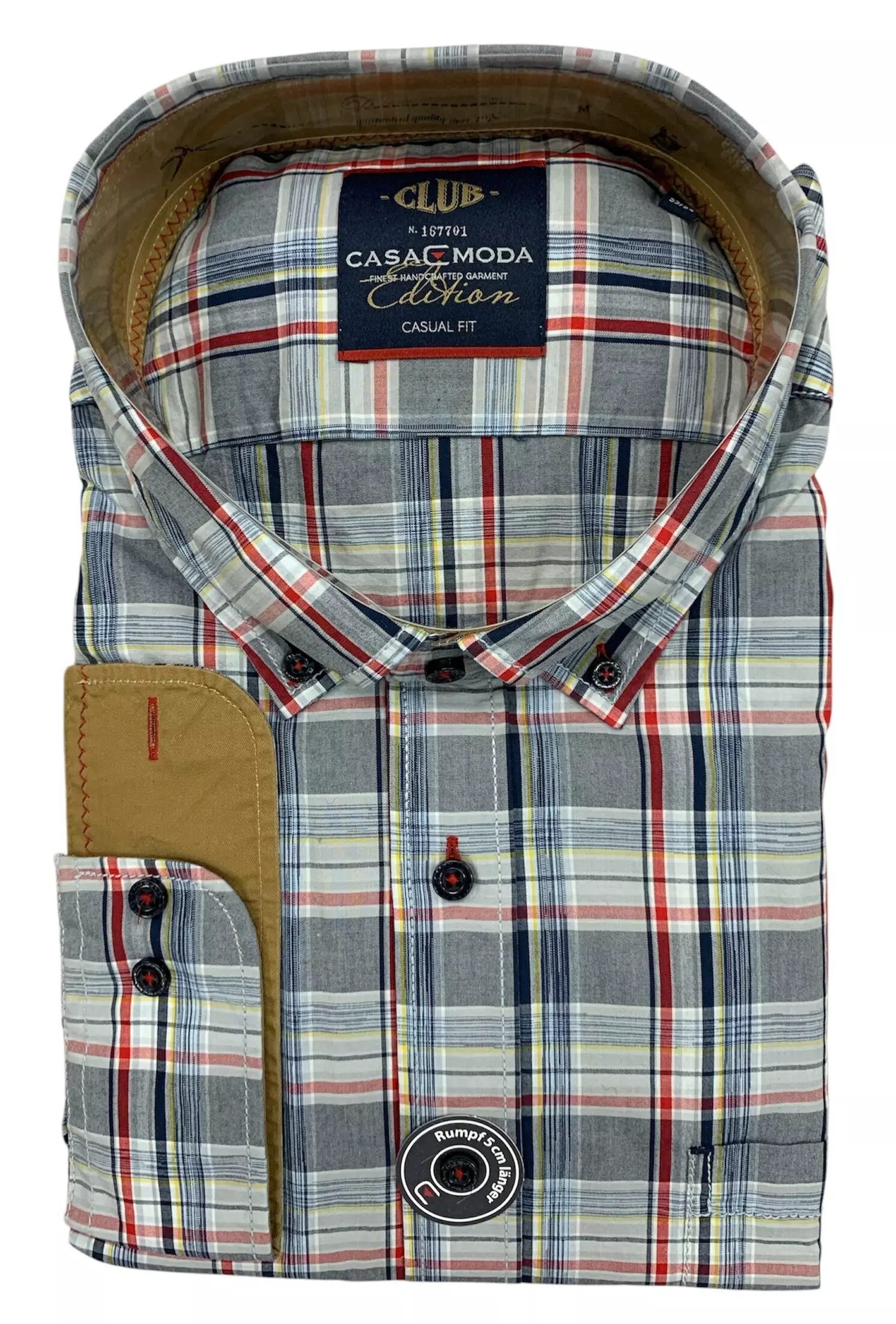 Casa Moda overhemd lange mouw in een blauw, geel en rode ruit met kraag button down. Overhemd met borstzakje in model casual fit 100% katoen.