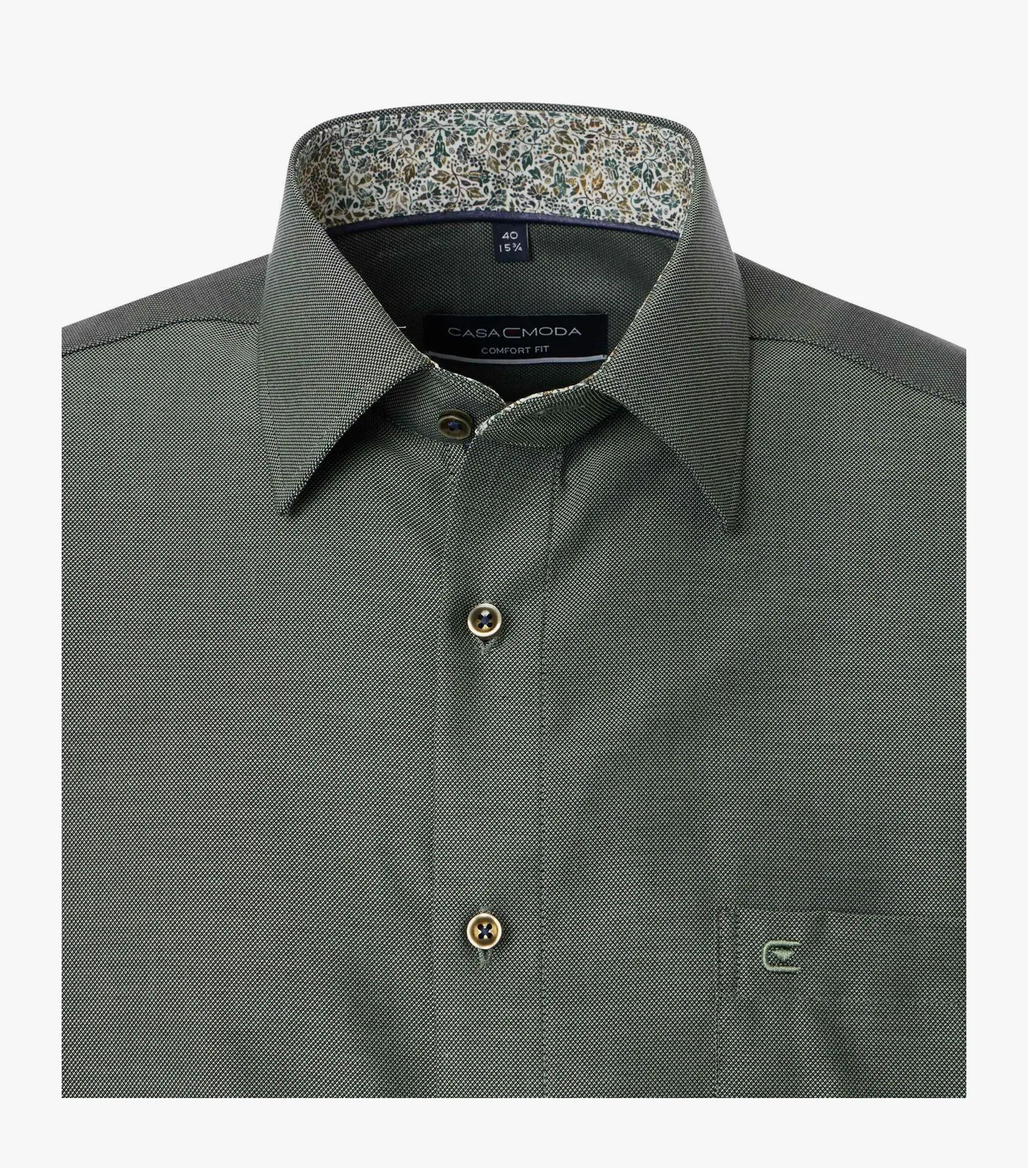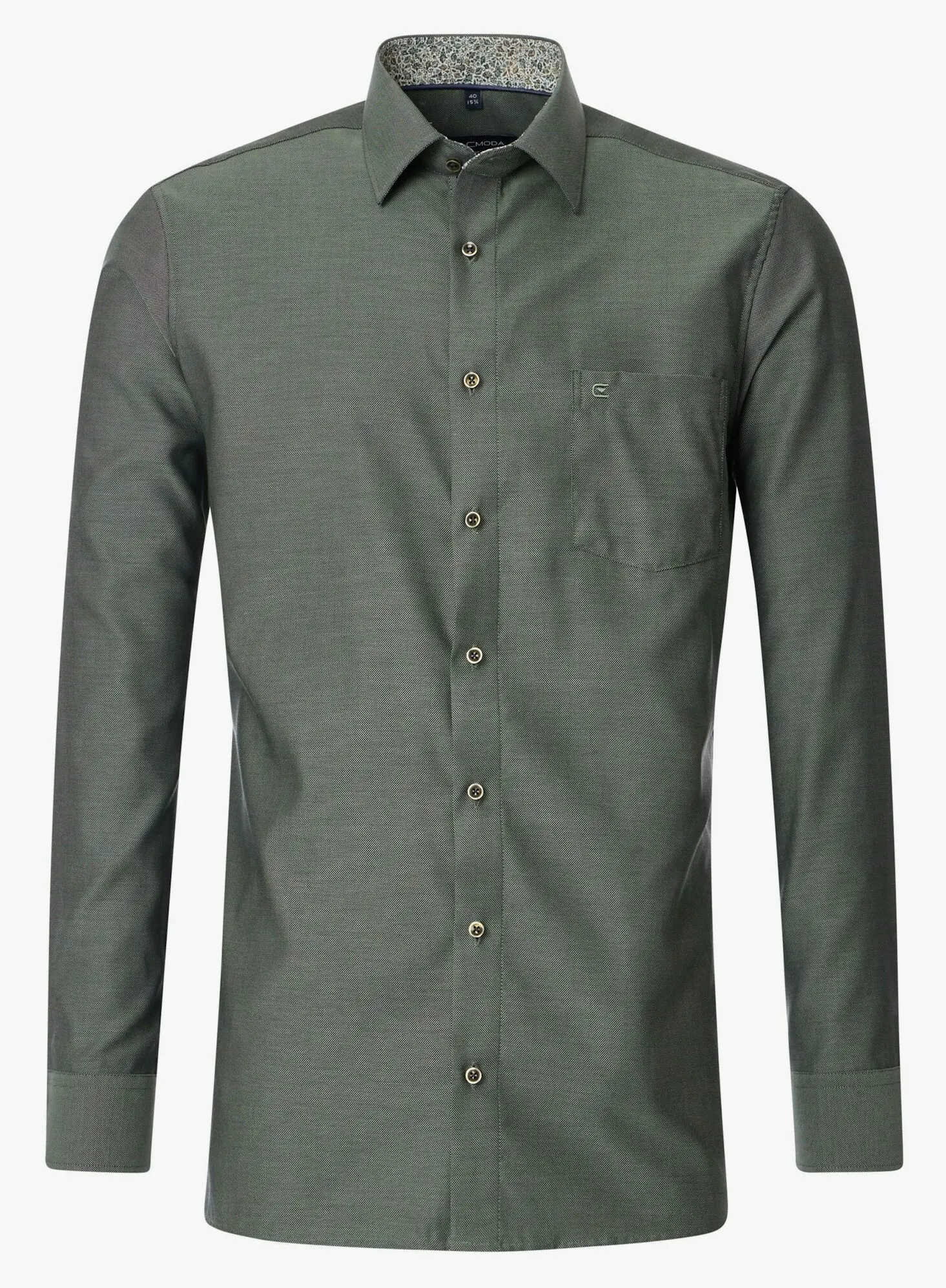 Casa Moda overhemd lange mouw met borstzakje in groen met contrasterende binnenkant kraag en manchetten. De kwaliteit is 100% katoen in model comfort fit strijkvrij.