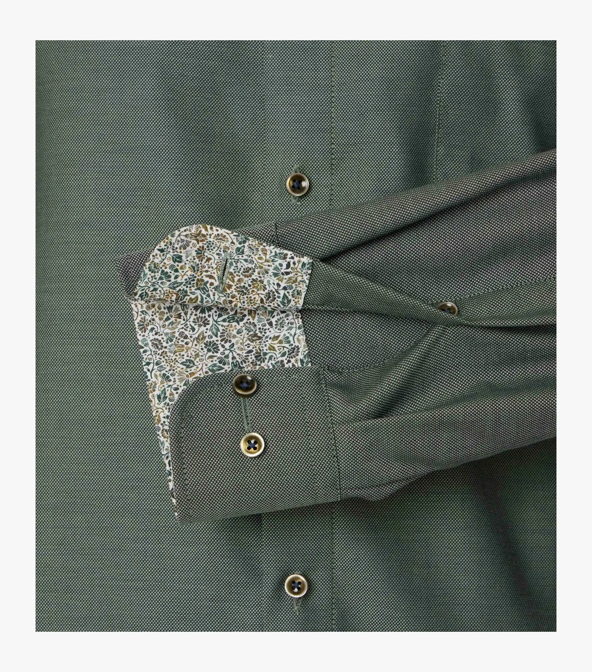 Casa Moda overhemd lange mouw met borstzakje in groen met contrasterende binnenkant kraag en manchetten. De kwaliteit is 100% katoen in model comfort fit strijkvrij.