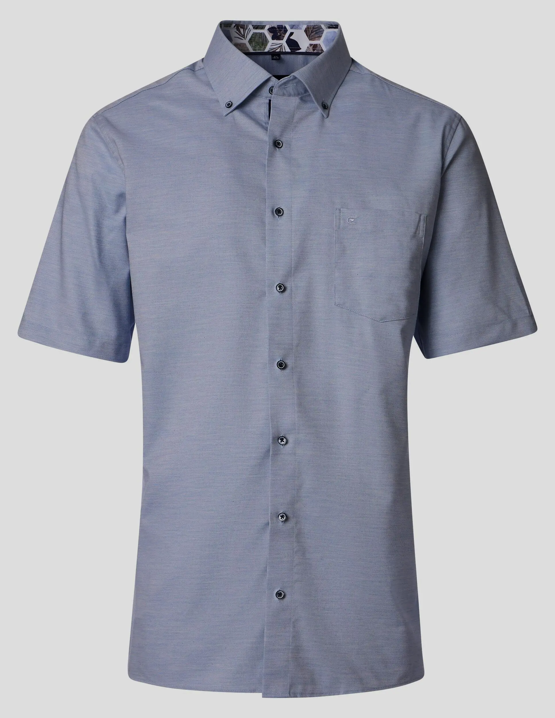 Casa Moda overhemd korte mouw met borstzakje in blauw. Binnenkant kraag is afgezet met een contrasterend stofje. Casa Moda overhemd met in 100% katoen model comfort fit strijkvrij.