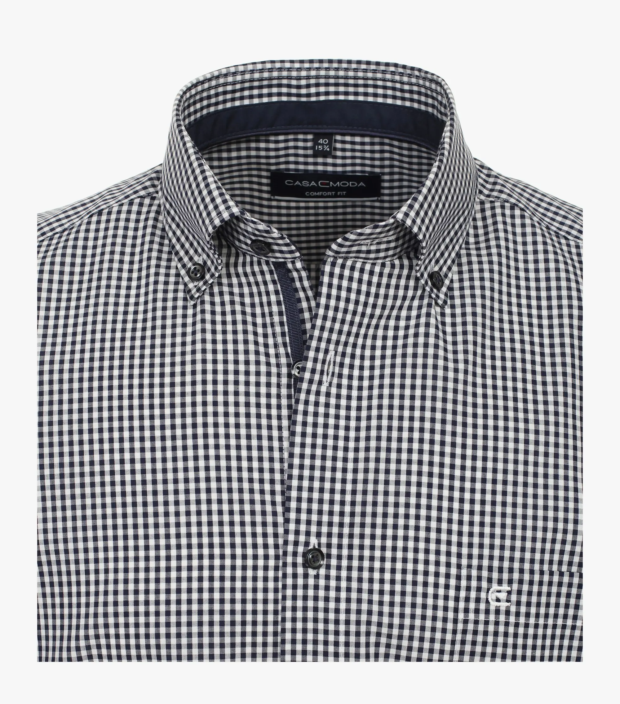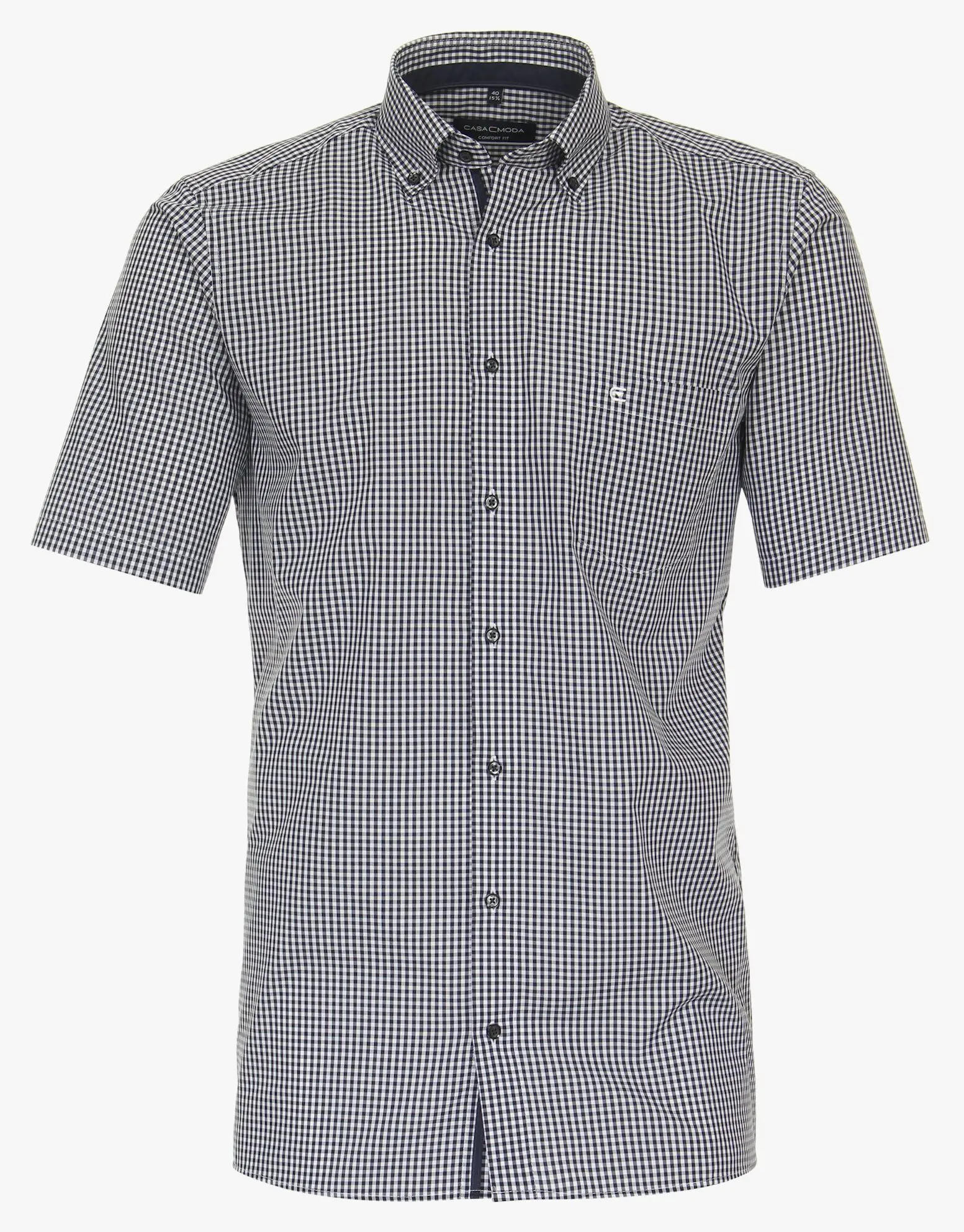 Casa Moda overhemd korte mouw blauw en wit blokjes design. Overhemd met borstzakje en kraag button down. 100% katoen strijkvrij in model comfort fit.