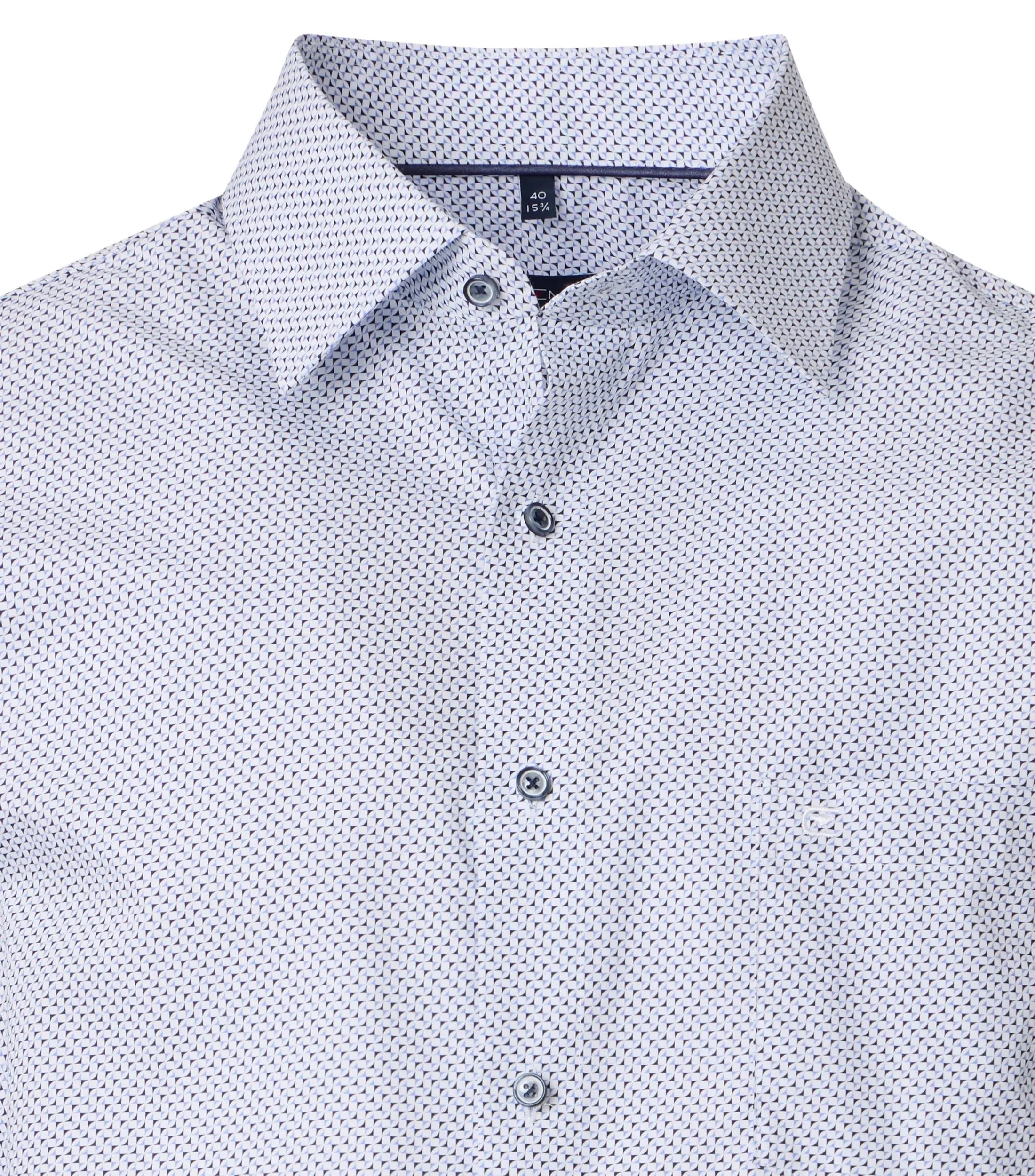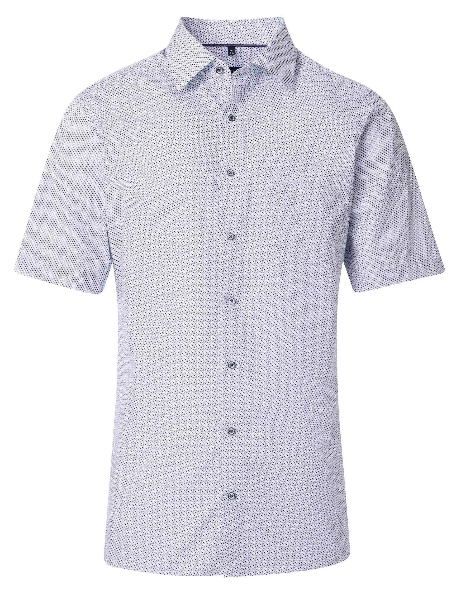 Casa Moda overhemd korte mouw met borstzakje blauw en wit fantasie design. Model comfort fit in 100% katoen easy care.