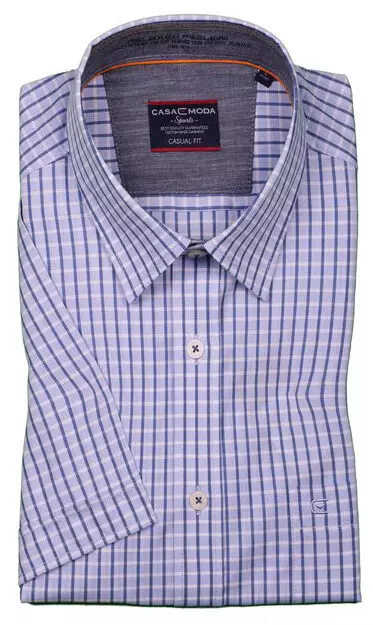 Casa Moda overhemd korte mouw met borstzak in een blauw en wit ruitje. Binnenkant kraag is met een contrasterend stofje afgewerkt. De kwaliteit is 100%katoen in casual fit.