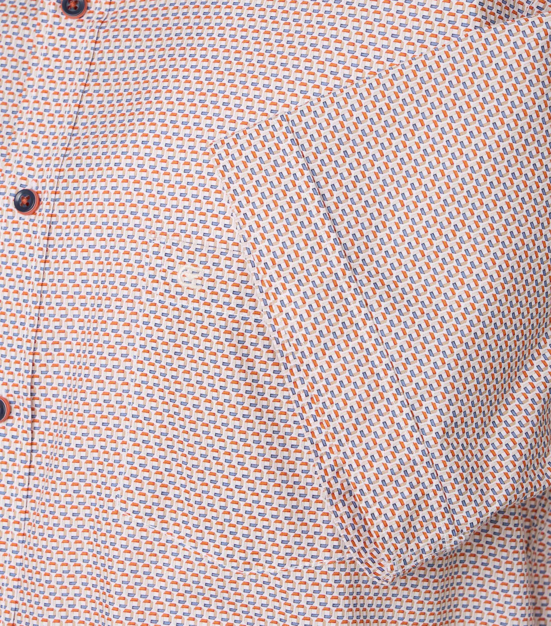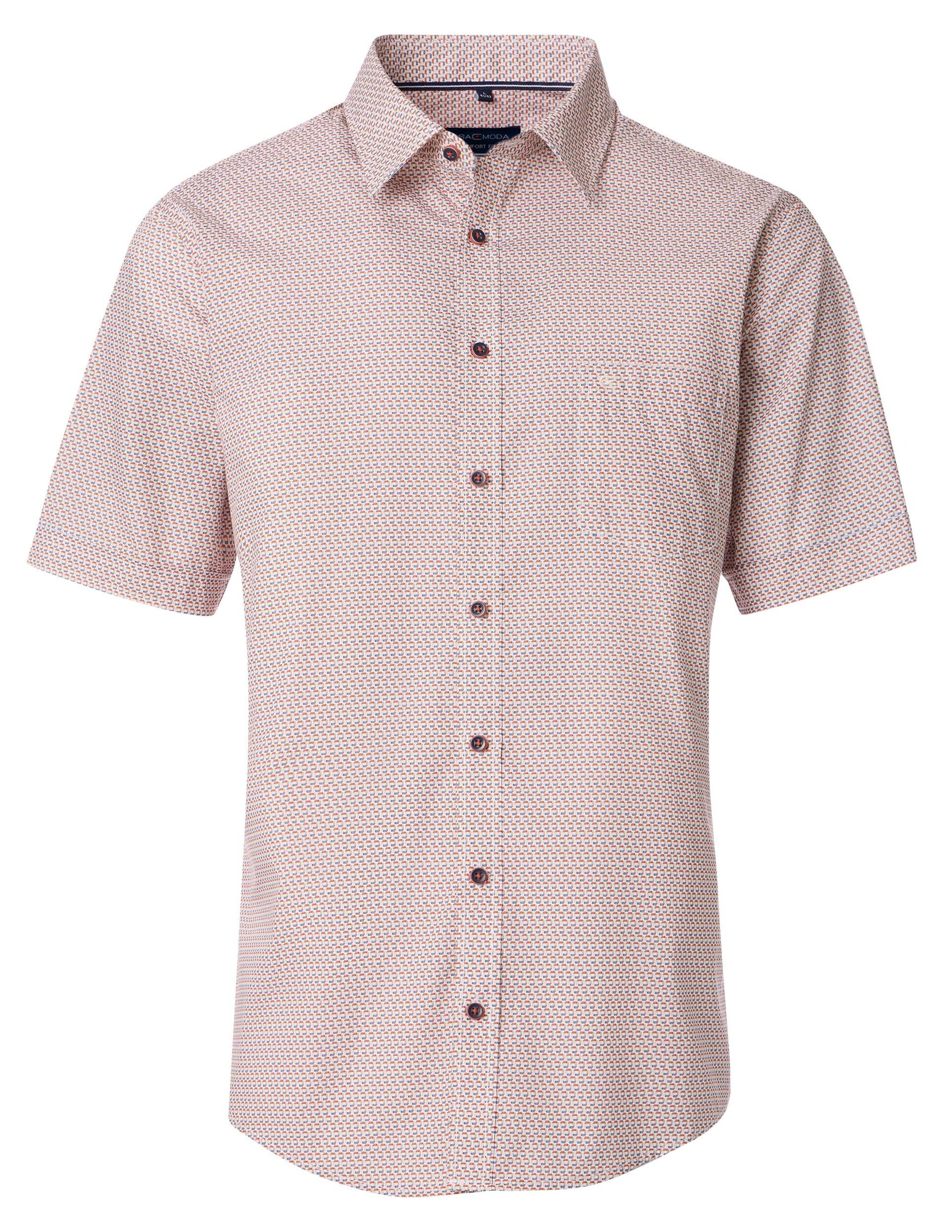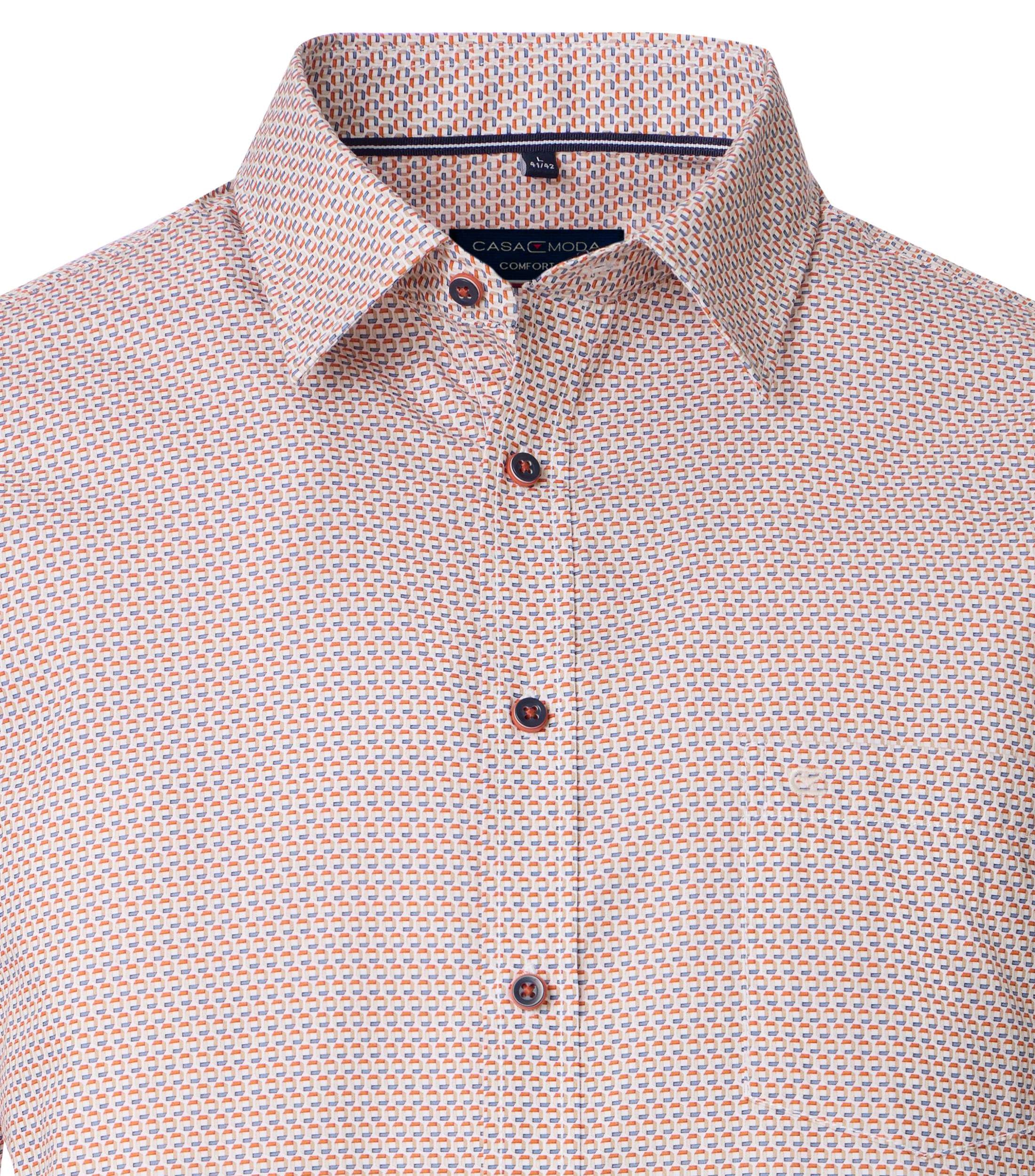 Casa Moda overhemd korte mouw met borstzakje in een blauw, rood en wit fantasie design. 100% katoen in model comfort fit.