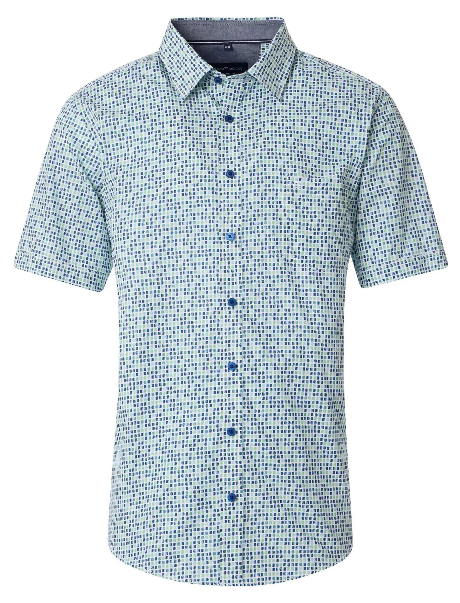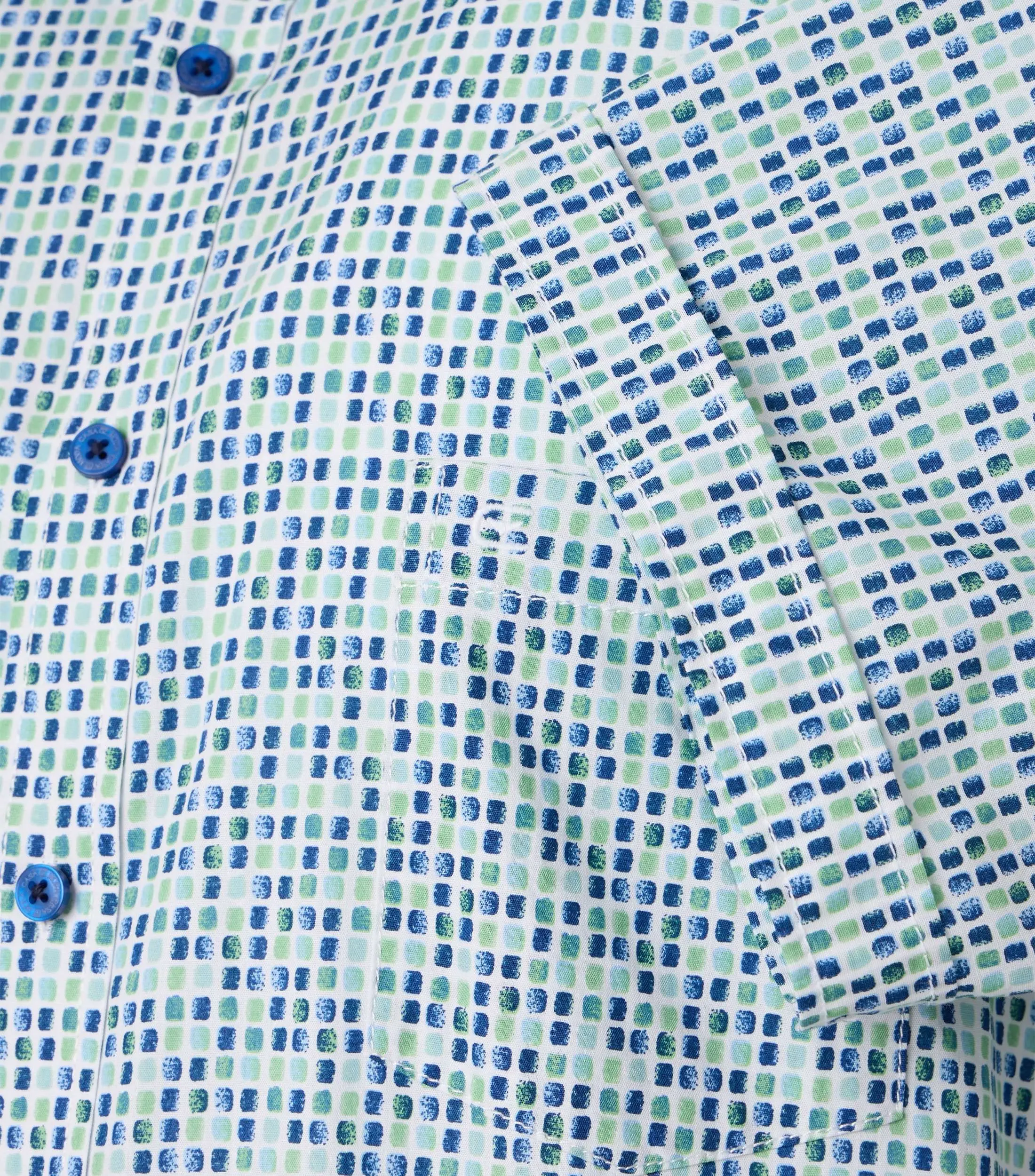Casa Moda overhemd korte mouw met borstzakje in een groen, blauw en witte blokjes design. Casa Moda overhemd met in 100% katoen model comfort fit.
