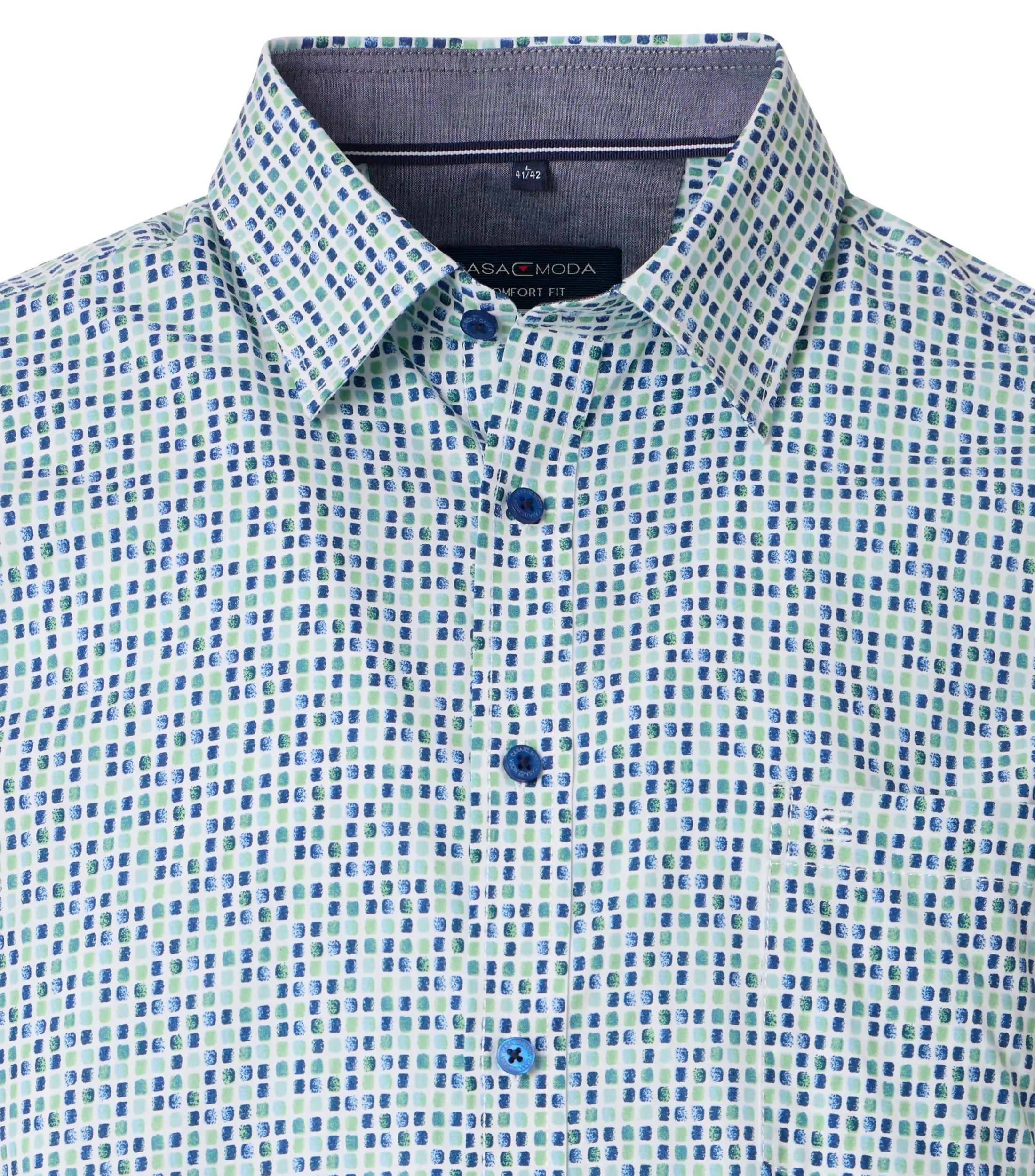 Casa Moda overhemd korte mouw met borstzakje in een groen, blauw en witte blokjes design. Casa Moda overhemd met in 100% katoen model comfort fit.