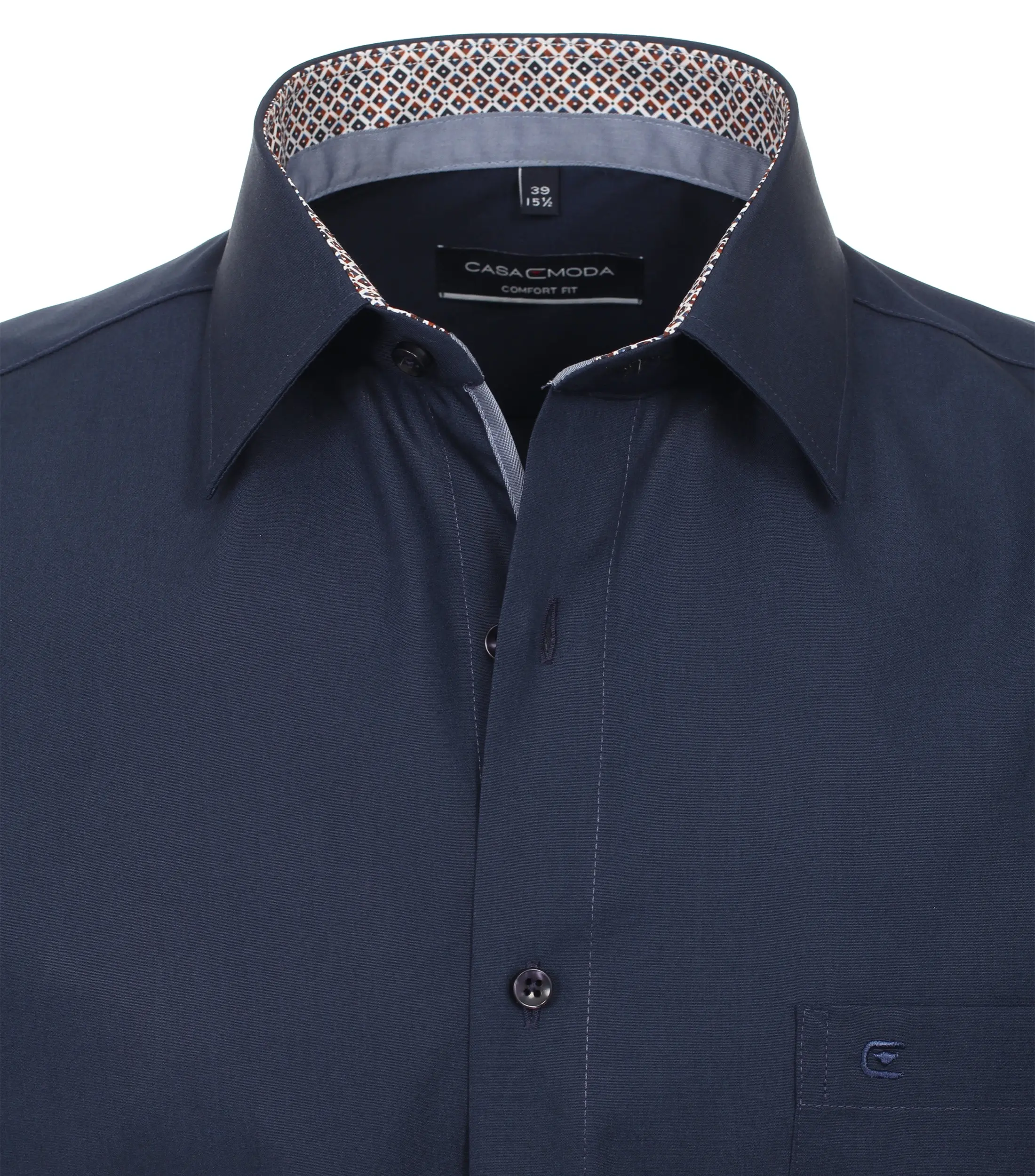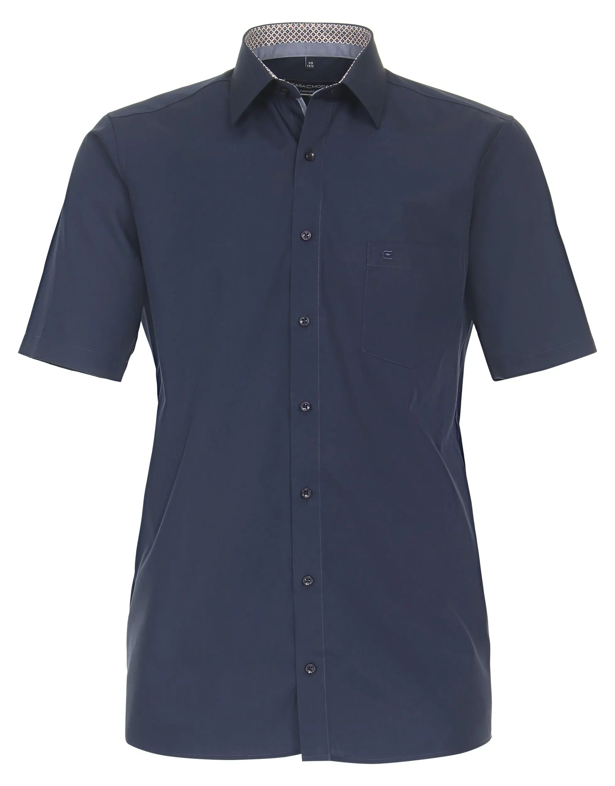 Casa Moda overhemd korte mouw met borstzakje donkerblauw met een contrasterend stofje aan de binnenkant kraag. Model comfort fit 100% katoen strijkvrij.