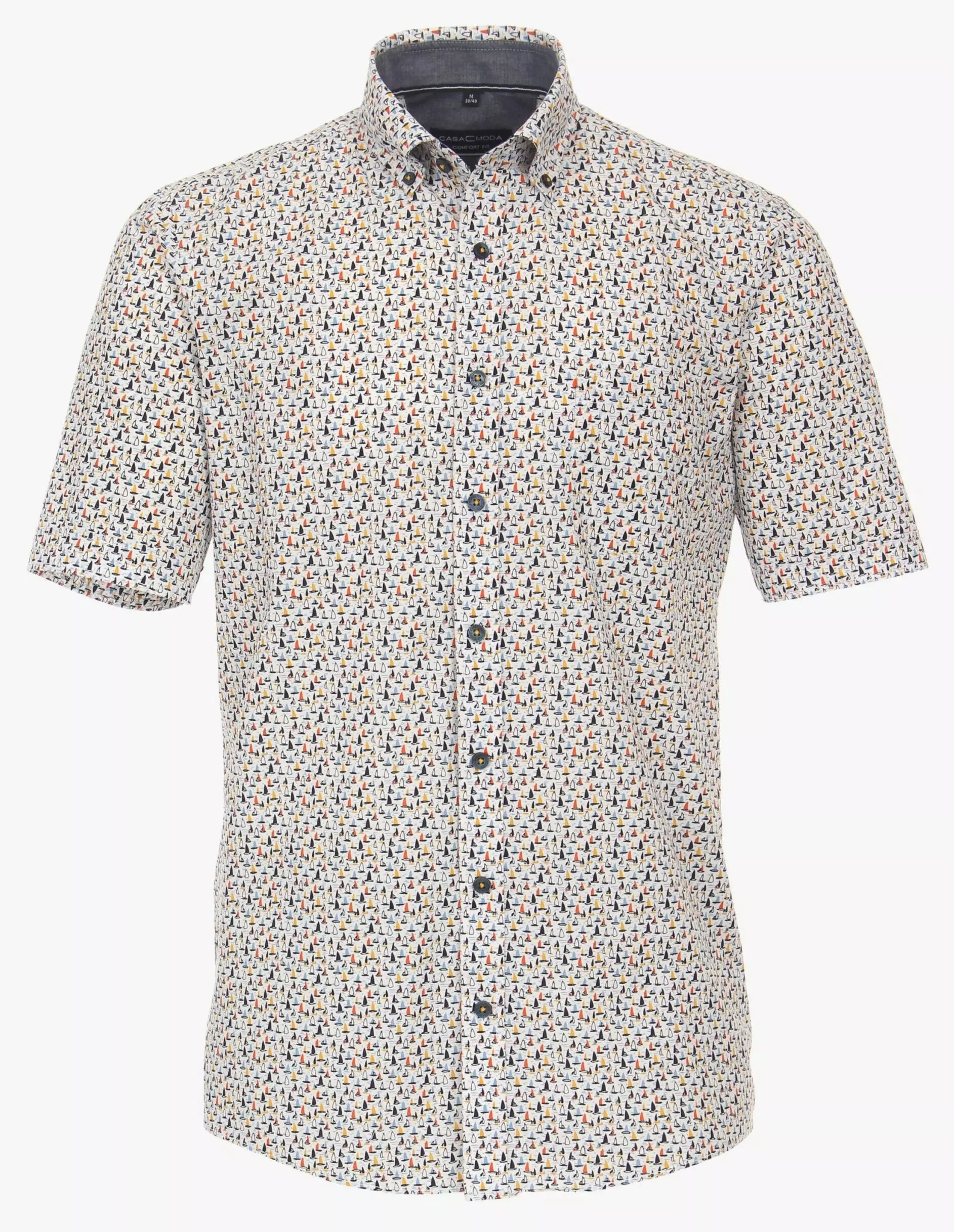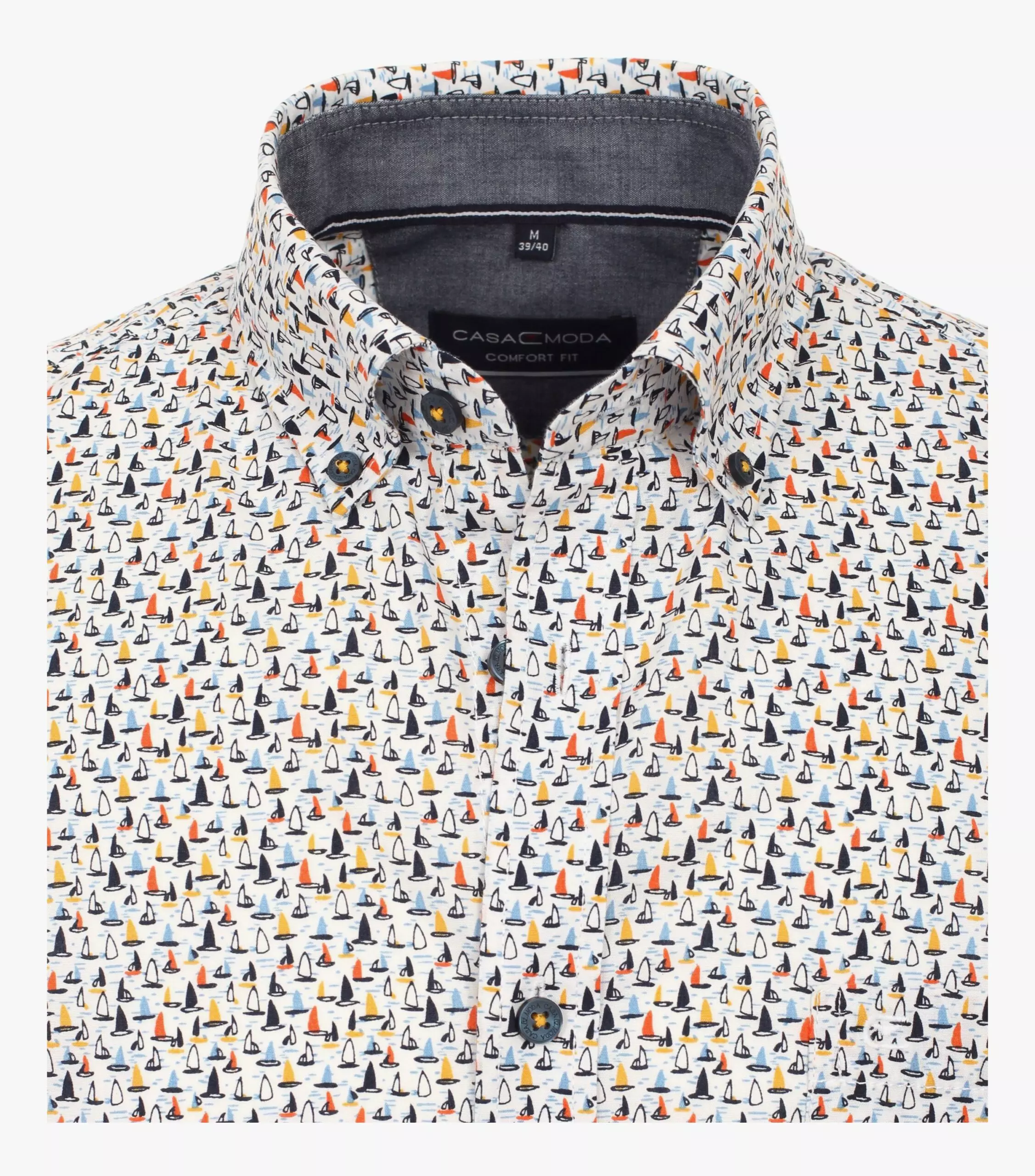 Casa Moda overhemd grote maat korte mouw gekleurde zeilbootjes. Casa Moda overhemd met korte mouw en borstzak met kraag button down. De kwaliteit is 100% katoen.