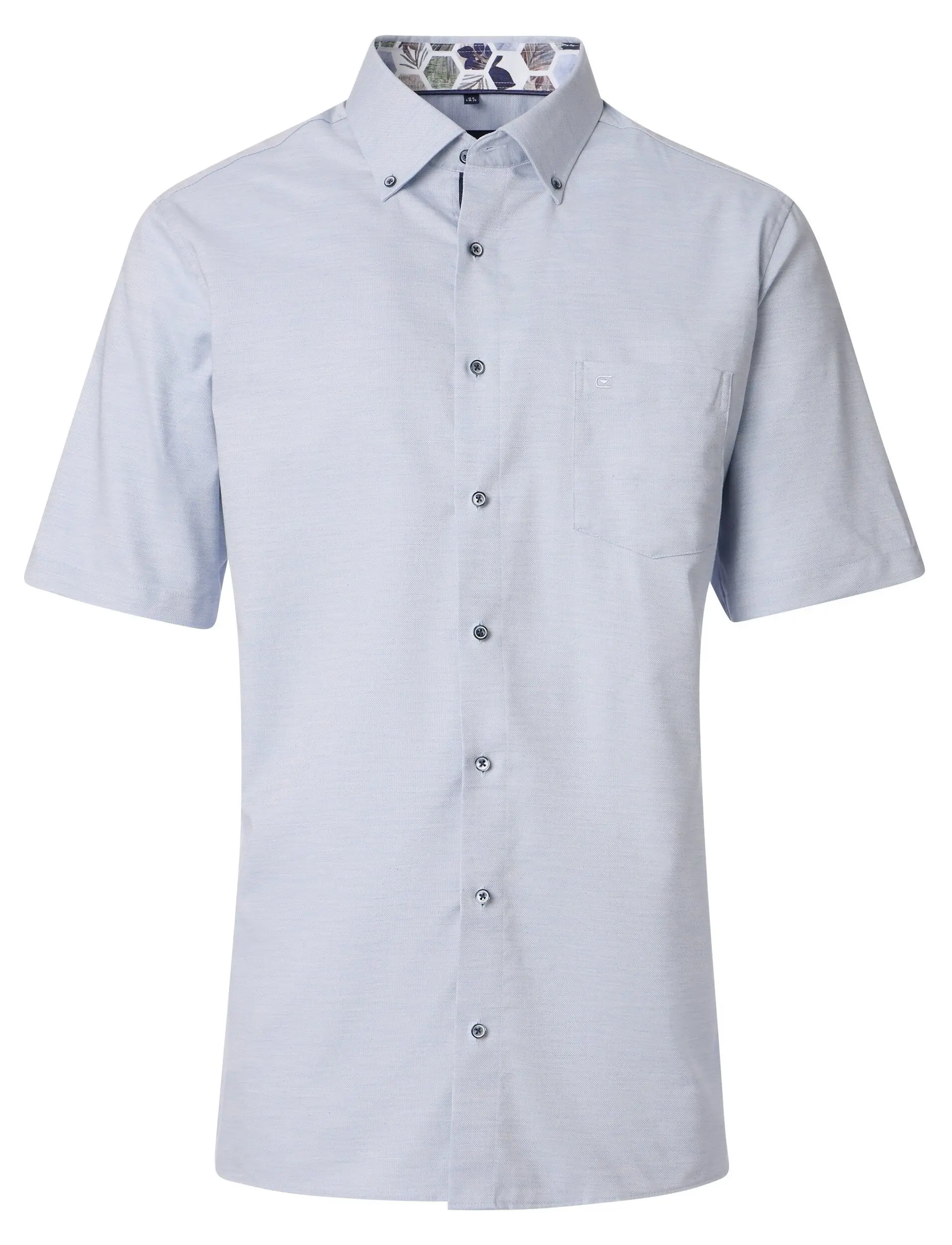Casa Moda overhemd korte mouw met borstzakje in lichtblauw button down. Binnenkant kraag is afgezet met een contrasterend stofje. Casa Moda overhemd met in 100% katoen model comfort fit easy care.