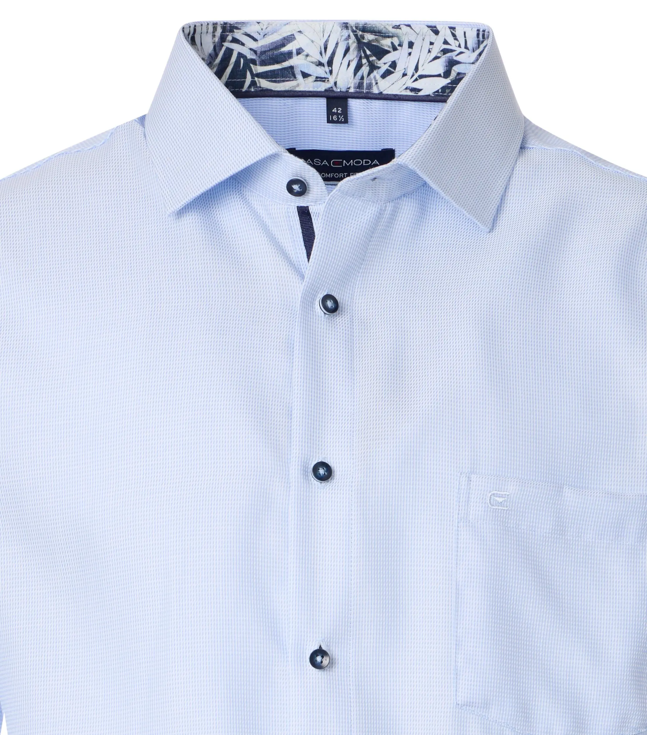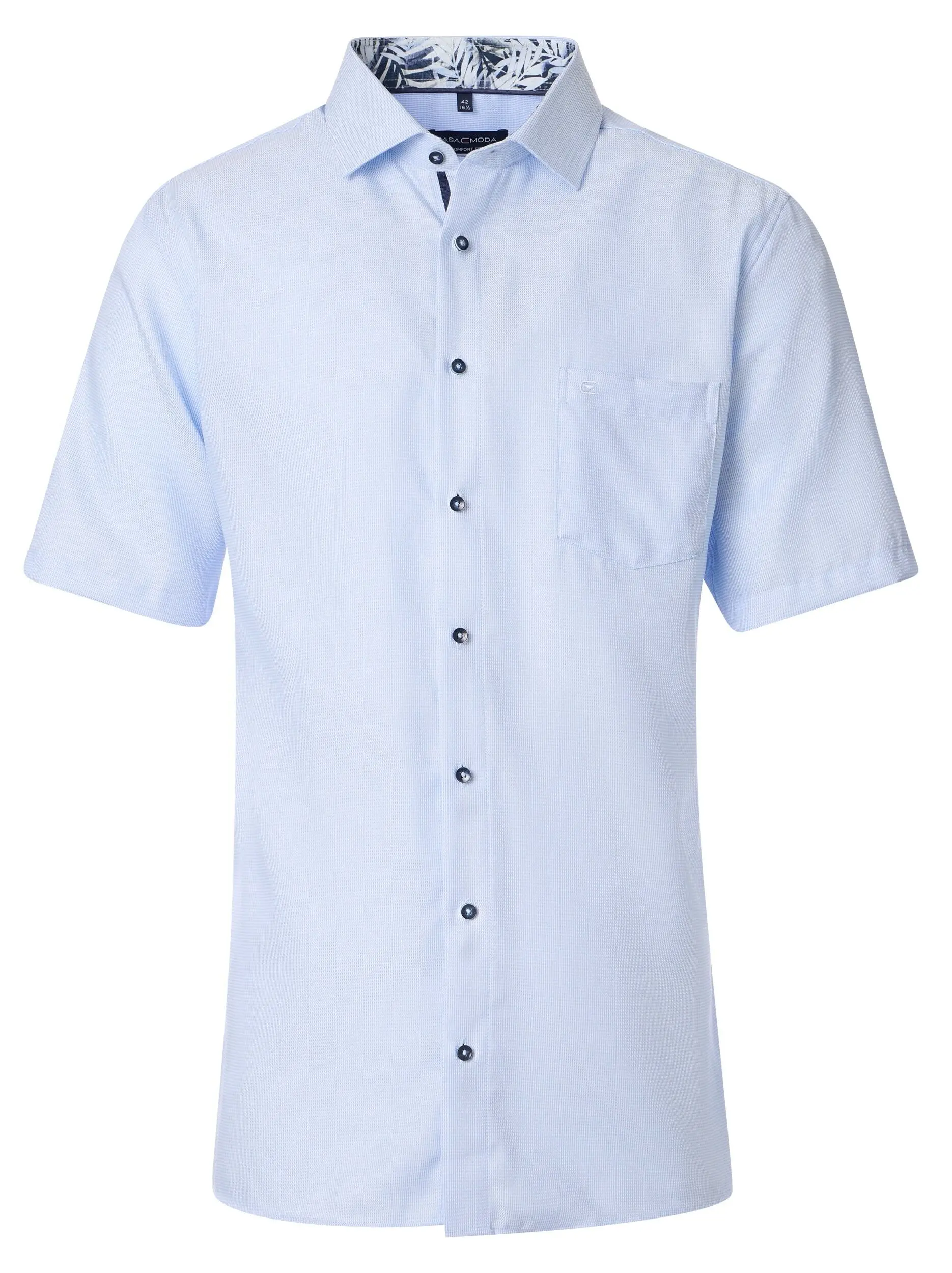 Casa Moda overhemd korte mouw lichtblauw contrast. Casa Moda overhemd in 100% katoen strijkvrij.