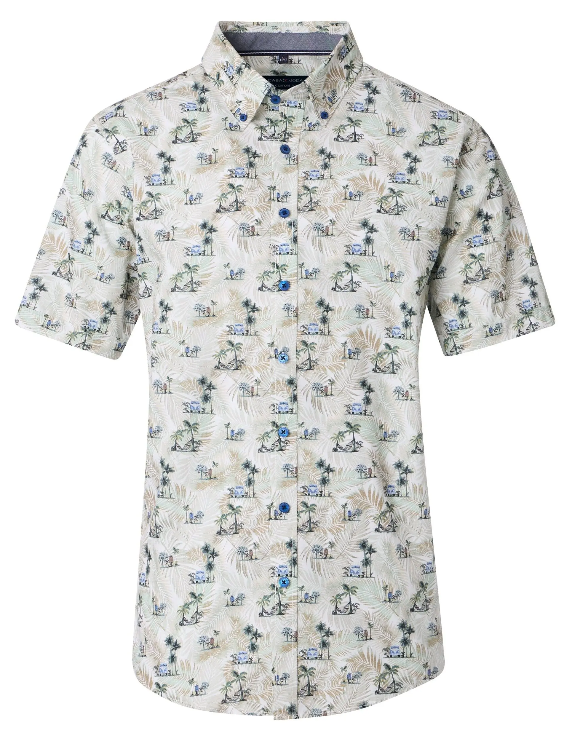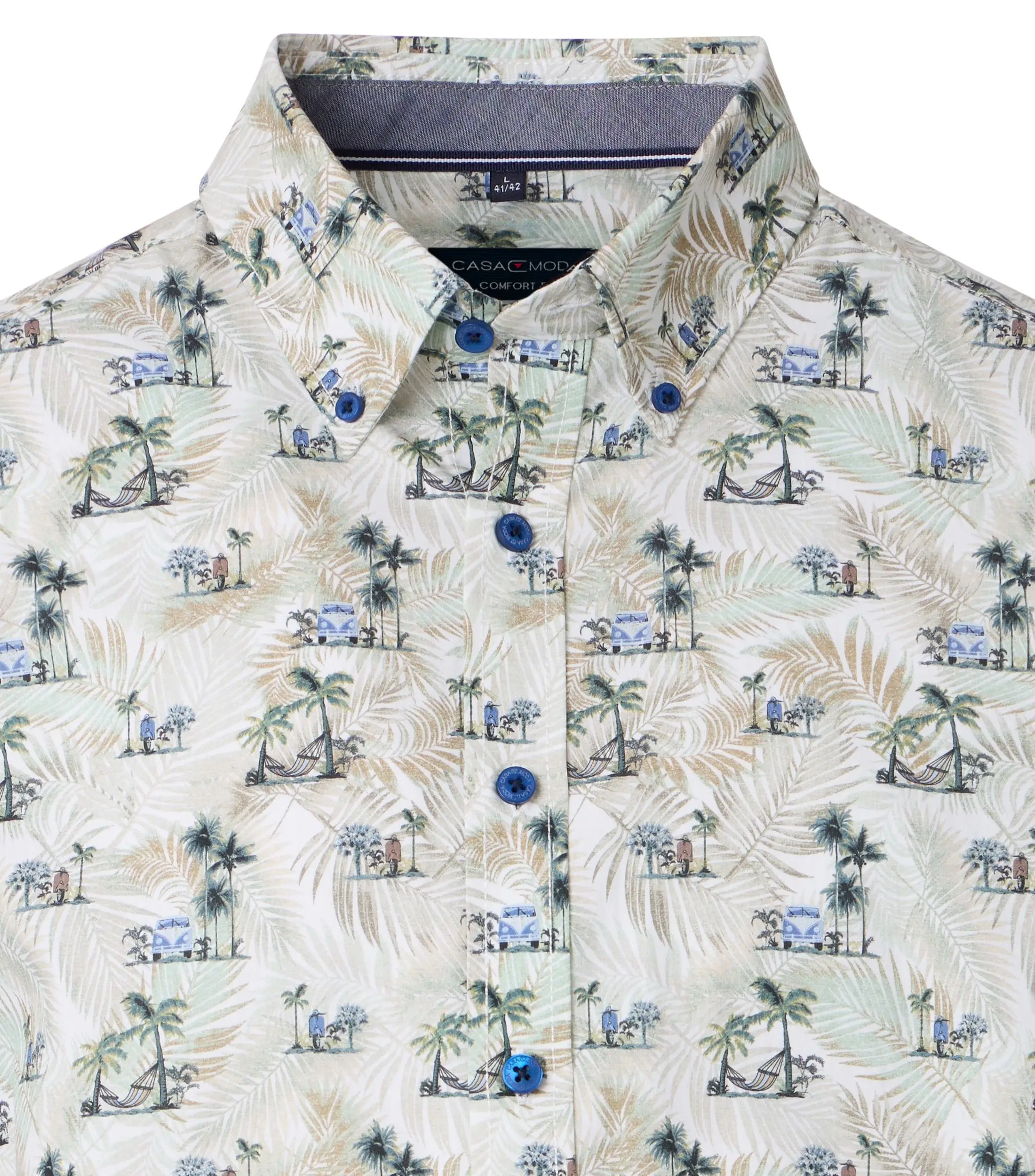 Casa Moda overhemd korte mouw palm en volkswagen T1 design. Casa Moda overhemd met kraag button down in 100% katoen model comfort fit.