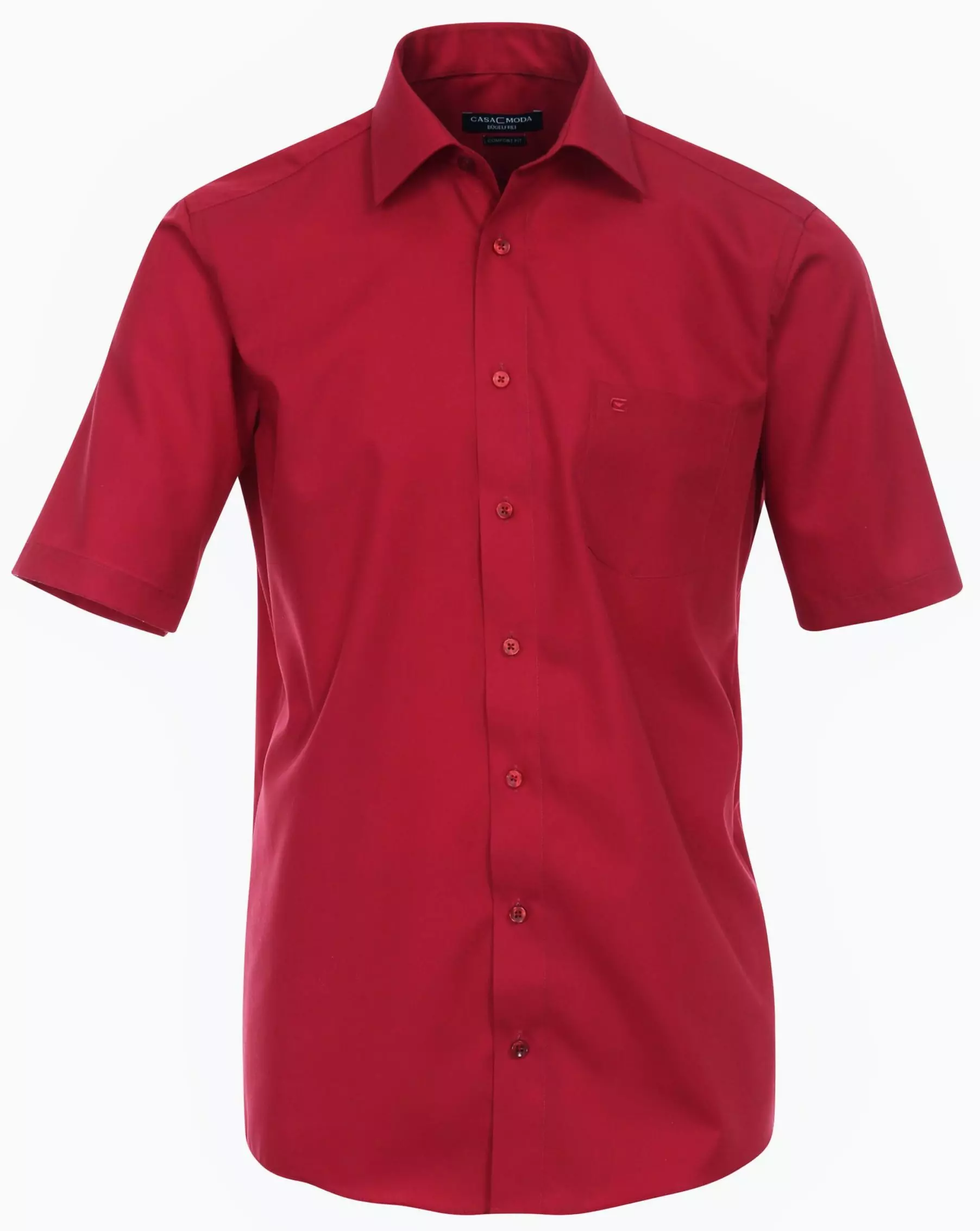 Casa Moda overhemd korte mouw met borstzak in uni rood. De kwaliteit is 100% katoen strijkvrij in model comfort fit.