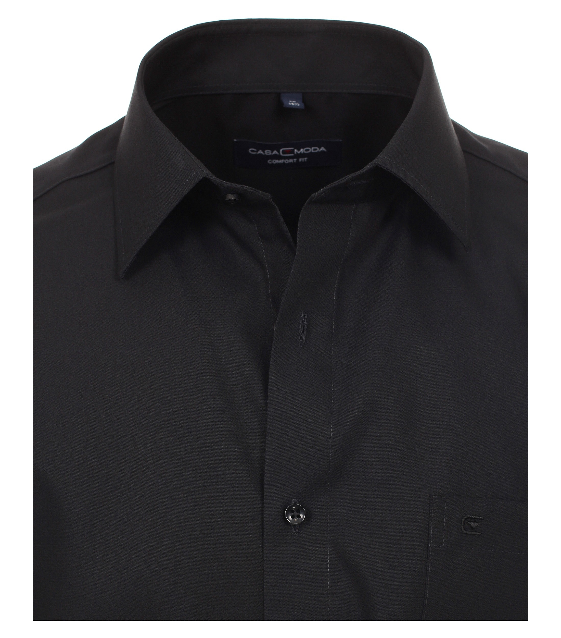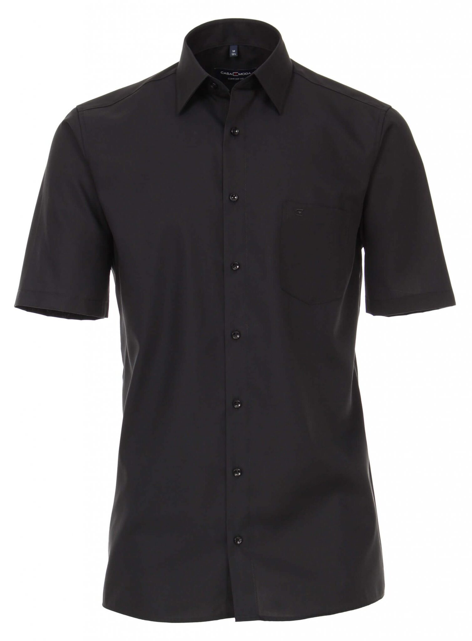 Casa Moda overhemd korte mouw met borstzakje in uni zwart. De kwaliteit van dit overhemd met korte mouw is 100% katoen strijkvrij in model comfort fit.