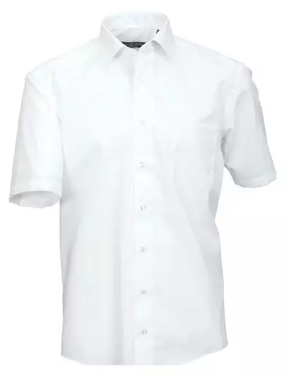 Cotton Island overhemd korte mouw met borstzakje uni wit in 100% katoen strijkvrij.