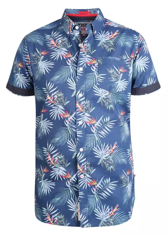 D555 grote maat korte mouw Hawaii overhemd donkerblauwe print. Overhemd met borstzak en een donkerblauwe Hawaii print. De kwaliteit van dit overhemd is 100% katoen.