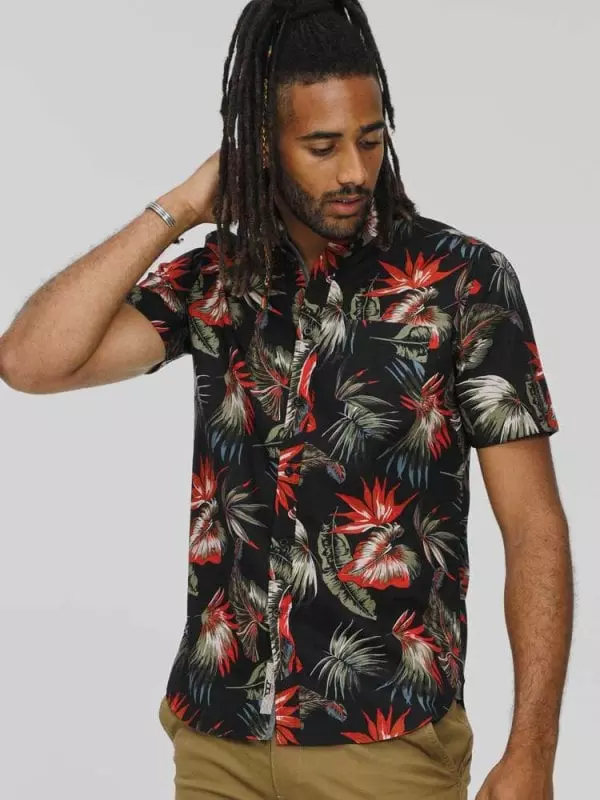 Bestel vandaag nog je zwarte Hawaiiaanse overhemd met bloemendesign en voeg een vleugje tropische flair toe aan je kledingkast!