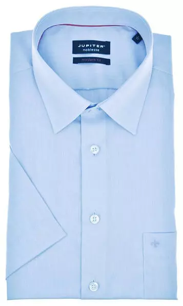 Jupiter grote maat overhemd korte mouw lichtblauw strijkvrij. Overhemd korte mouw met borstzak van het Duitse merk Jupiter. De kwaliteit van dit overhemd is 100% katoen strijkvrij in regular fit.