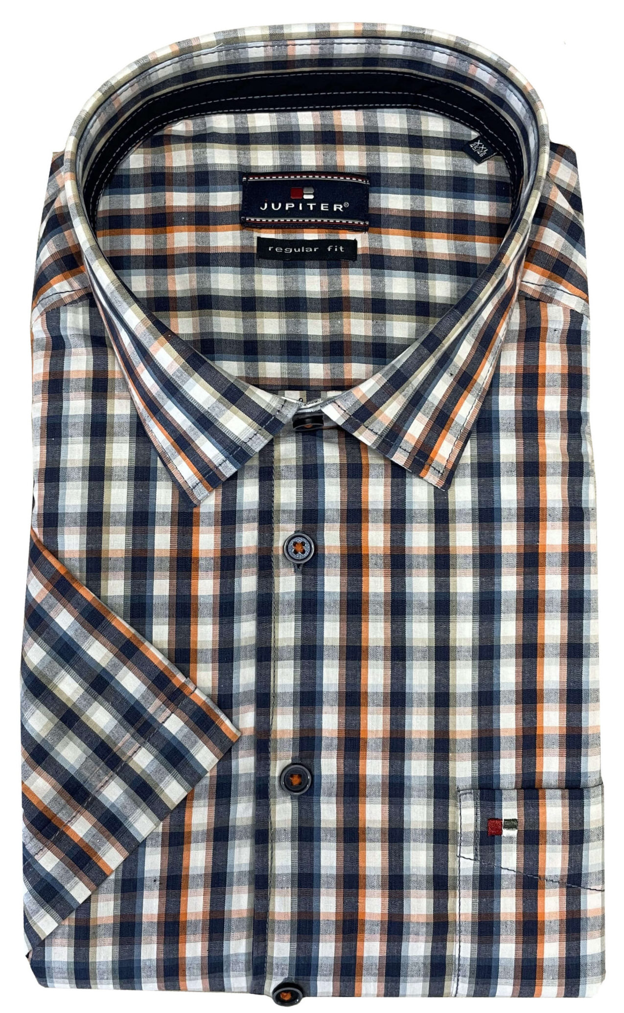 Jupiter grote maat overhemd wit met gekleurde ruit. Jupiter overhemd korte mouw met borstzak en binnenkant kraag is afgewerkt met een contrasterend stofje. 100% katoen regular fit.