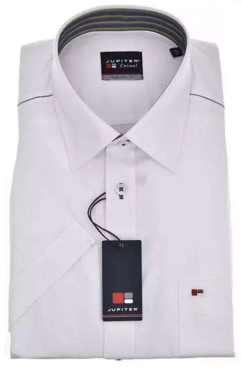 Jupiter overhemd korte mouw met borstzak in uni wit met binnenkant kraag afgewerkt met een fantasie patroontje. De kwaliteit van dit overhemd is 100% katoen.