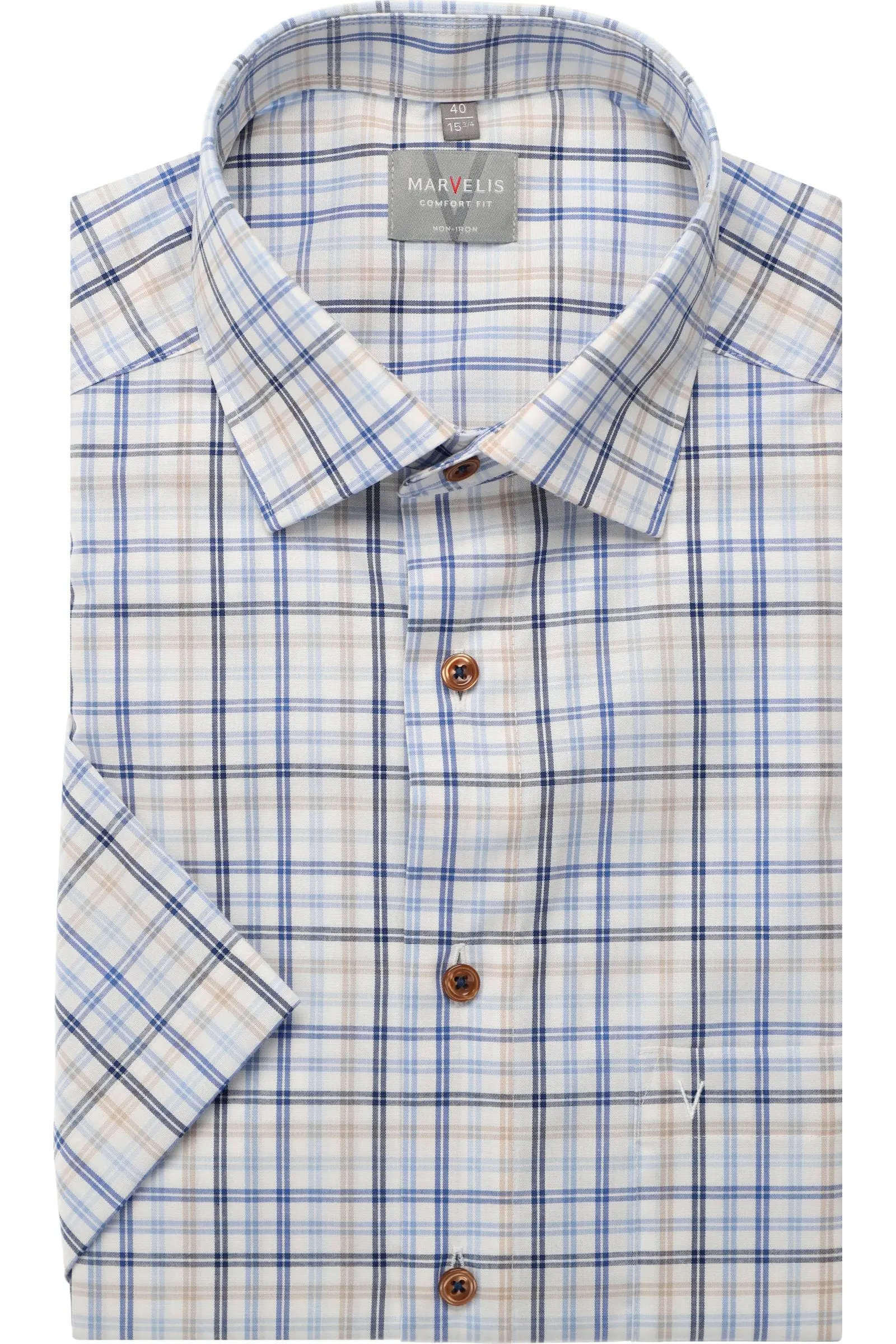 Marvelis overhemd korte mouw blauw en beige ruit. Marvelis overhemd korte mouw met borstzakje 100% katoen strijkvrij in model comfort fit.