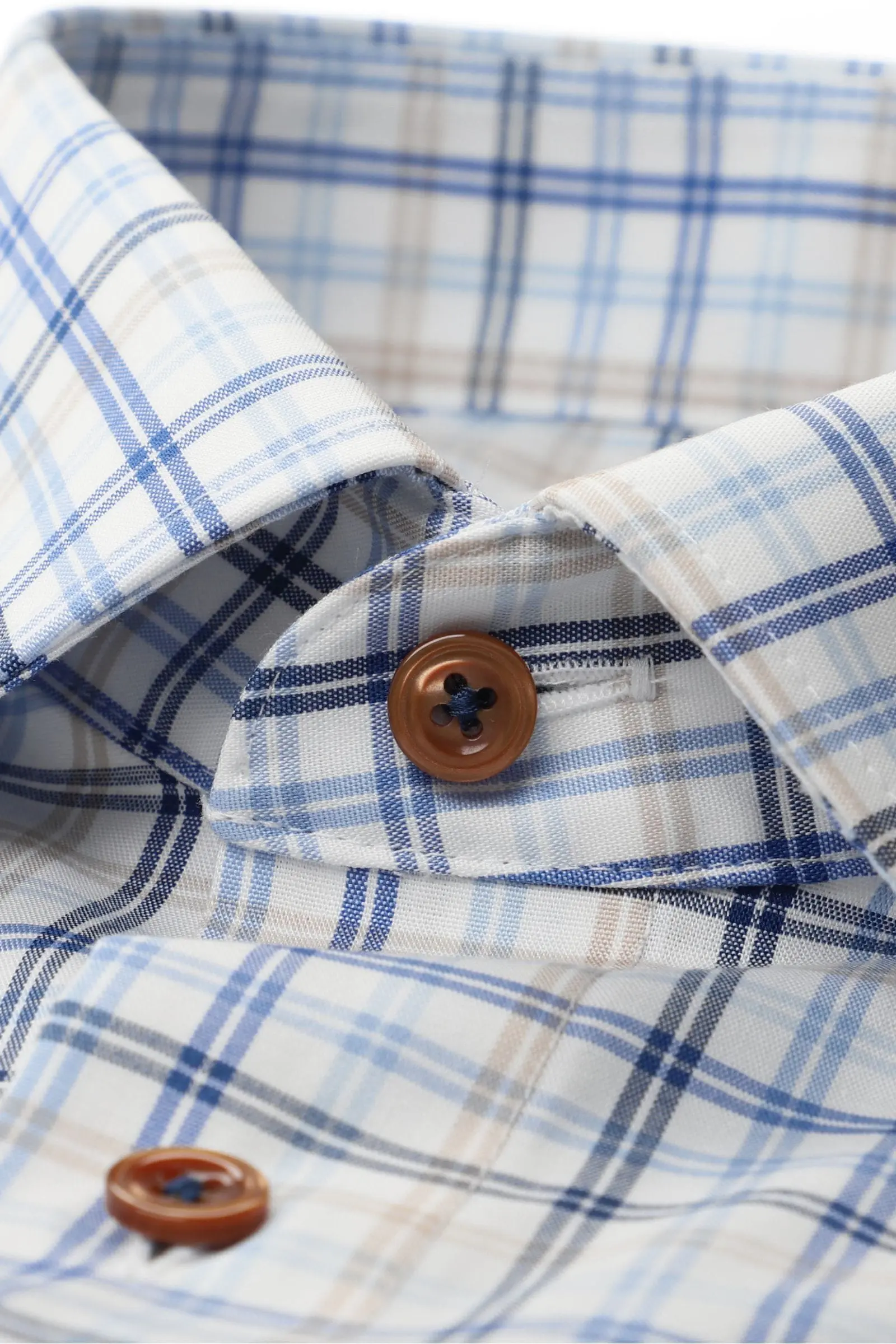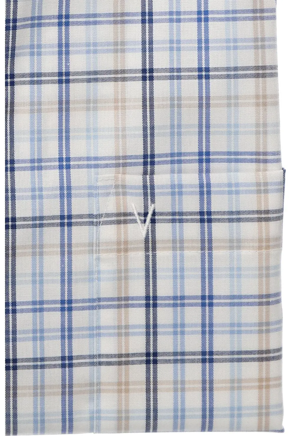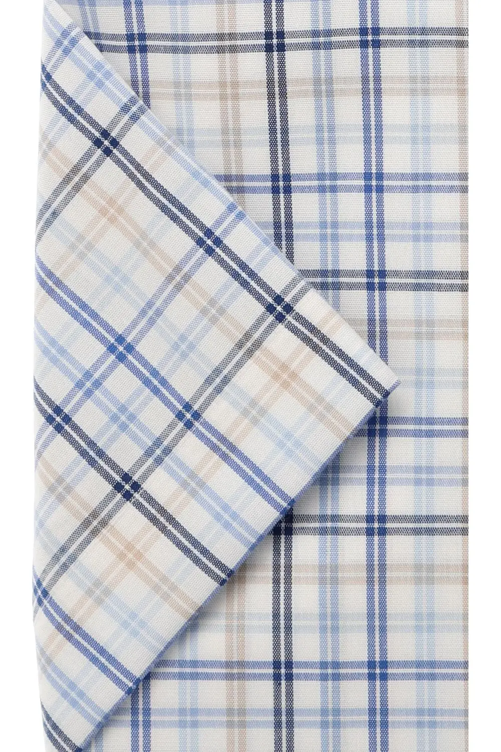 Marvelis overhemd korte mouw met borstzakje in een wit, blauw en beige ruit design. Overhemd 100% katoen strijkvrij in model comfort fit.