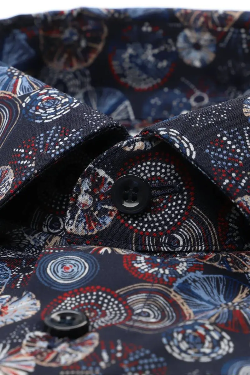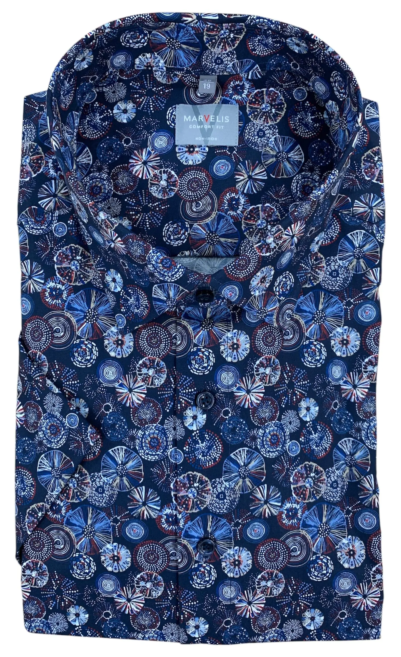 Marvelis grote maat overhemd korte mouw donkerblauw fantasie strijkvrij.
