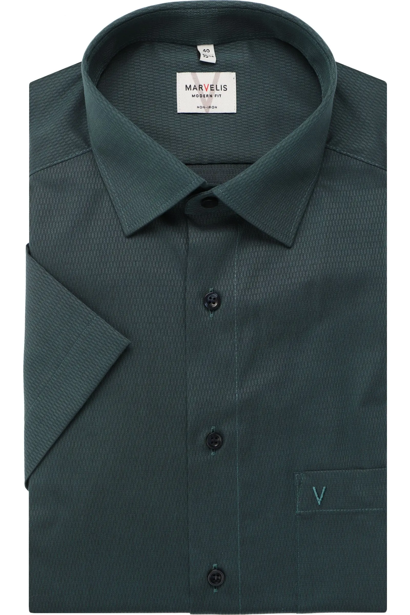 Marvelis overhemd korte mouw donkergrijs design. Marvelis overhemd korte mouw met borstzakje 100% katoen strijkvrij in model comfort fit.