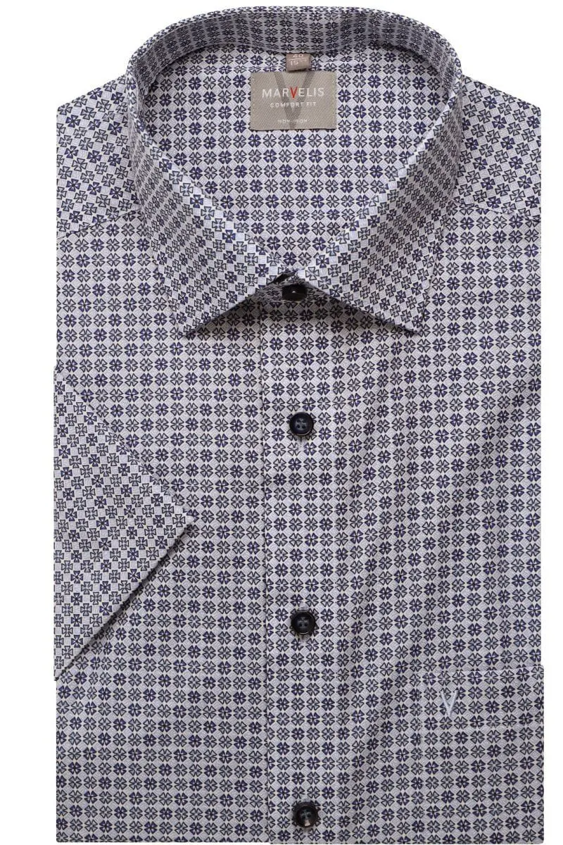 Marvelis grote maat overhemd korte mouw grijs design strijkvrij.
