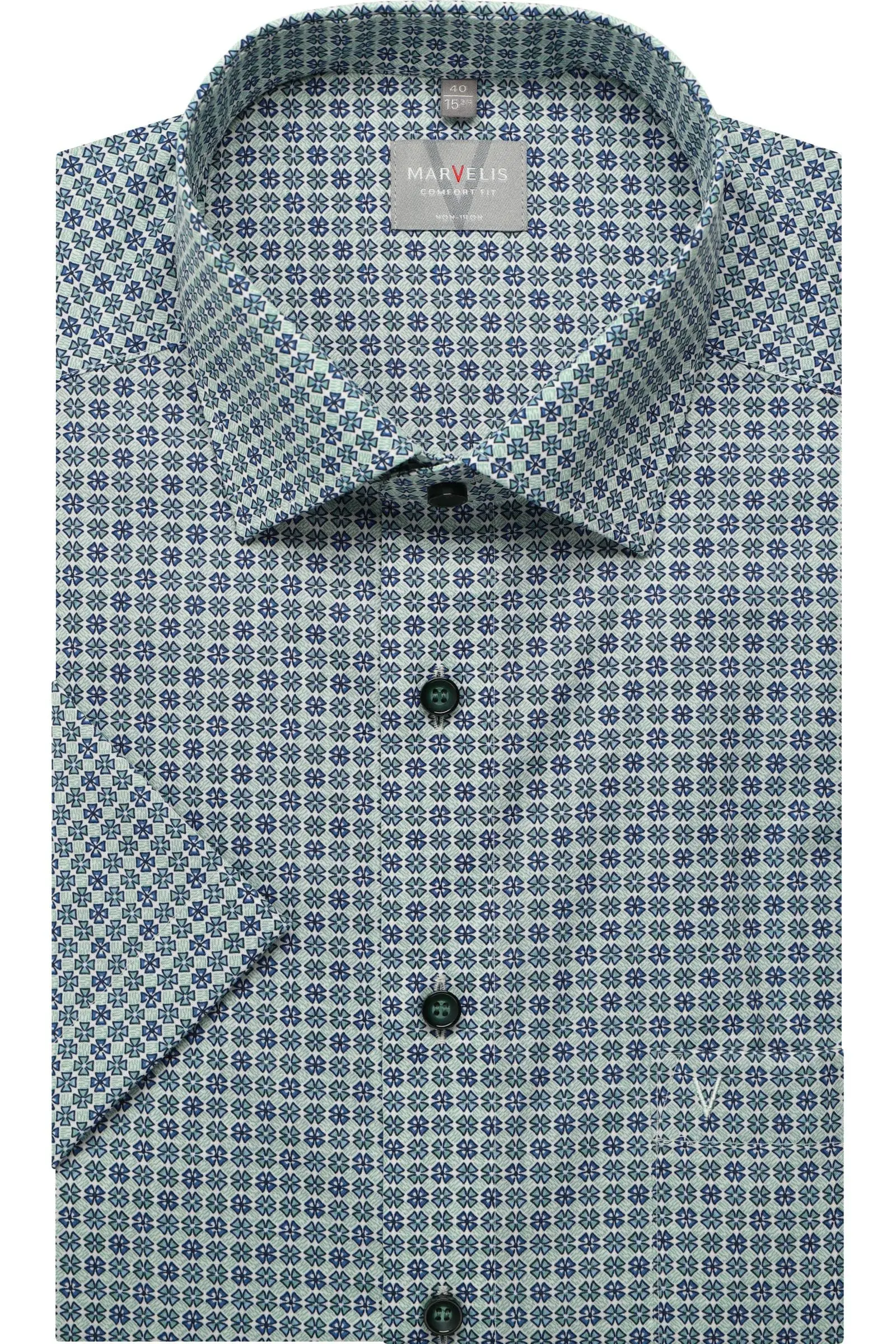 Marvelis overhemd korte mouw in een groen en blauw fantasie design. Overhemd heeft een borstzakje in 100% katoen strijkvrij in model comfort fit.
