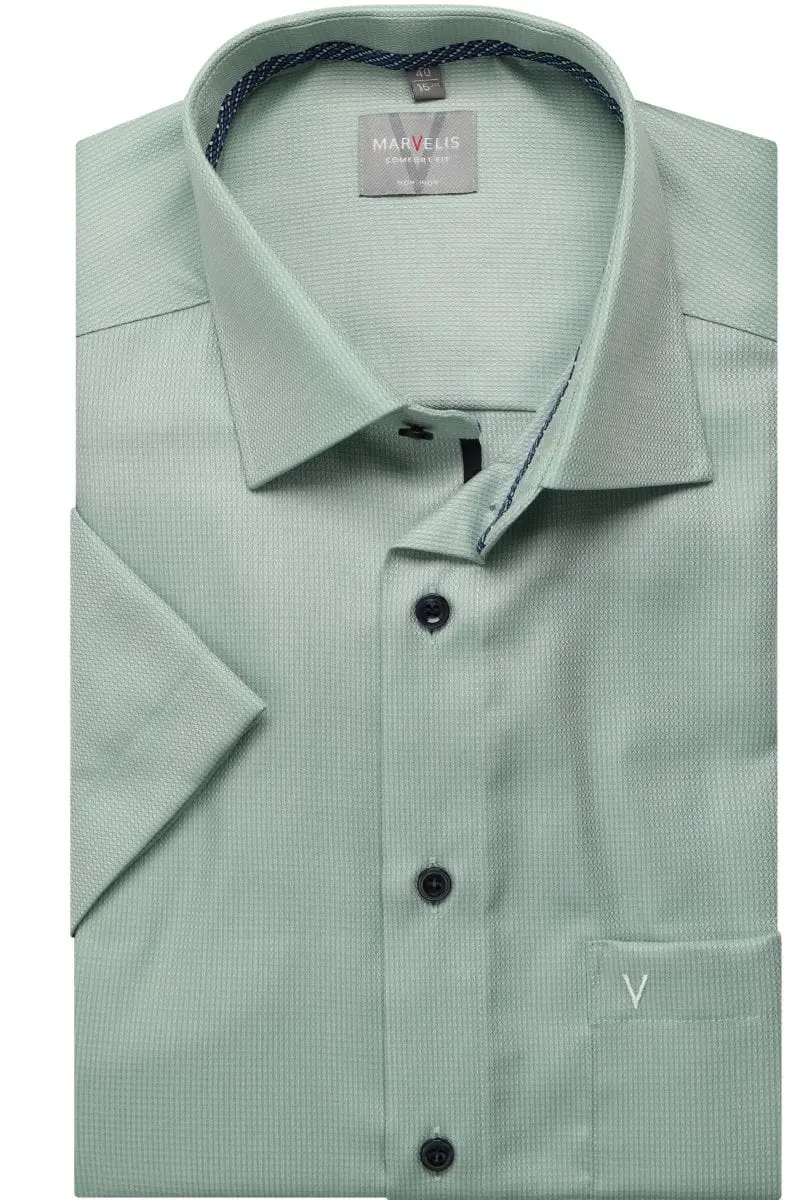Marvelis overhemd korte mouw in een groen design. Overhemd heeft een borstzakje en is gemaakt van 100% katoen strijkvrij. Marvelis overhemd in model comfort fit.