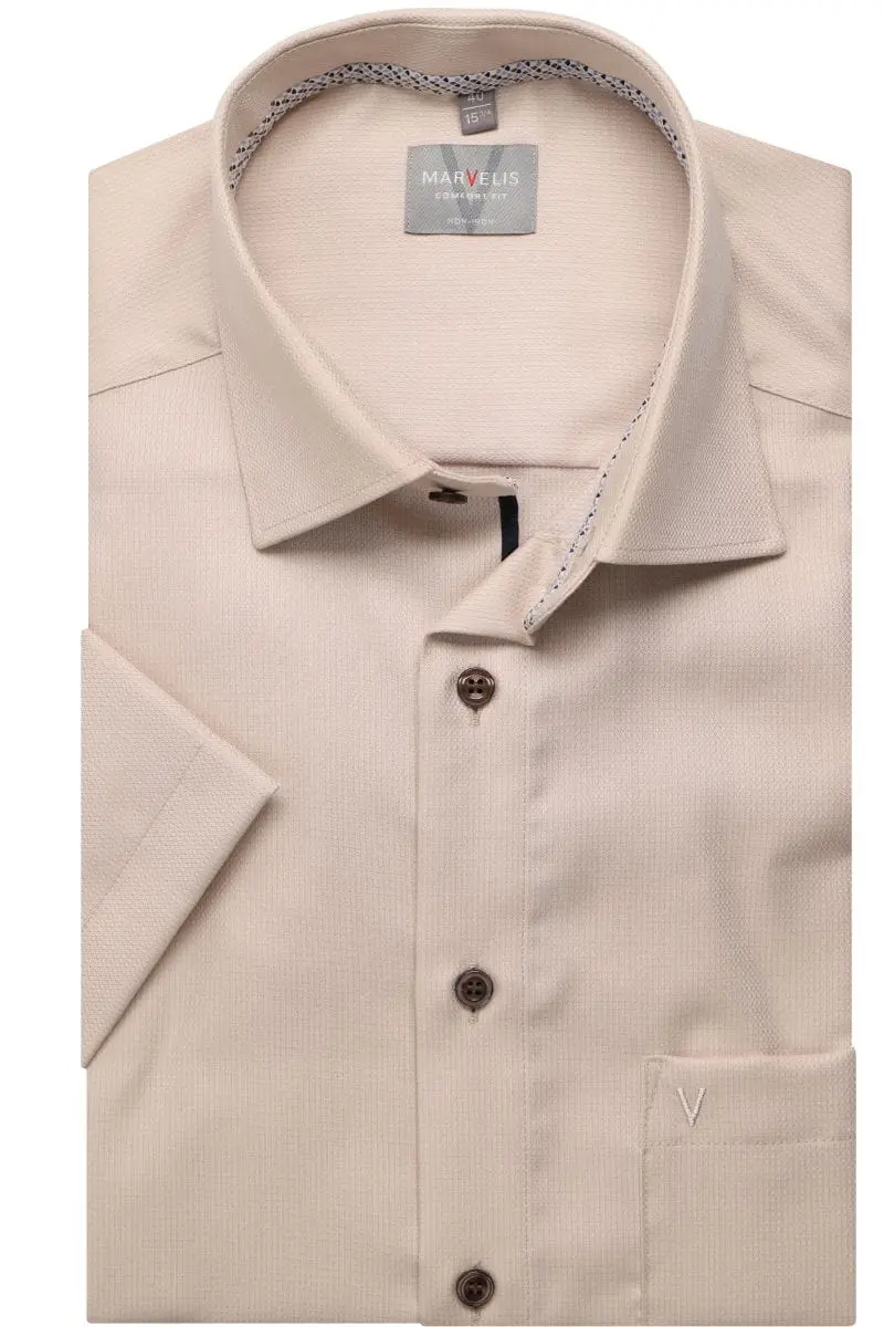 Marvelis grote maat overhemd korte mouw roze strijkvrij. Het overhemd heeft korte mouwen en een borstzakje. Overhemd is gemaakt van 100%katoen strijkvrij. Marvelis overhemd in model comfort fit.